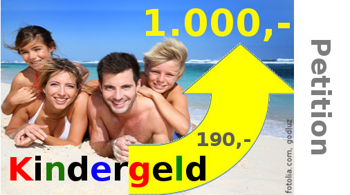 Neuer Petitionstext: Erhöhung des Kindergeldes von 190,- Euro auf 1.000,- Euro. Gleichzeitig Streichung von finanziellen Verpflichtungen von Eltern wie z.B. Alimentzahlungen. Gleiche Freiheiten und finanzielle Zuwendungen für deutsche Kinder wie das bei Asyl-Kindern üblich ist.