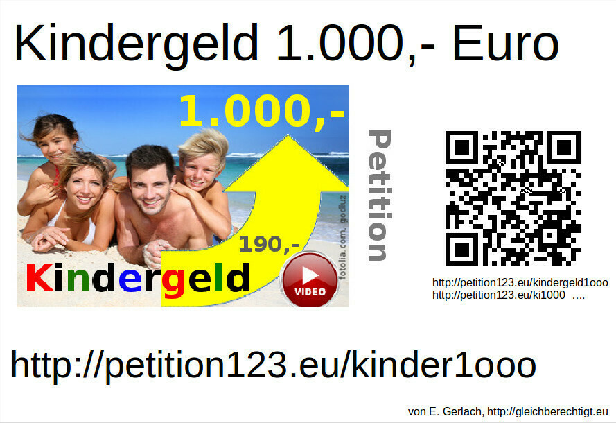 1.000,- Euro Kindergeld für alle Kinder und Jugendlichen.
