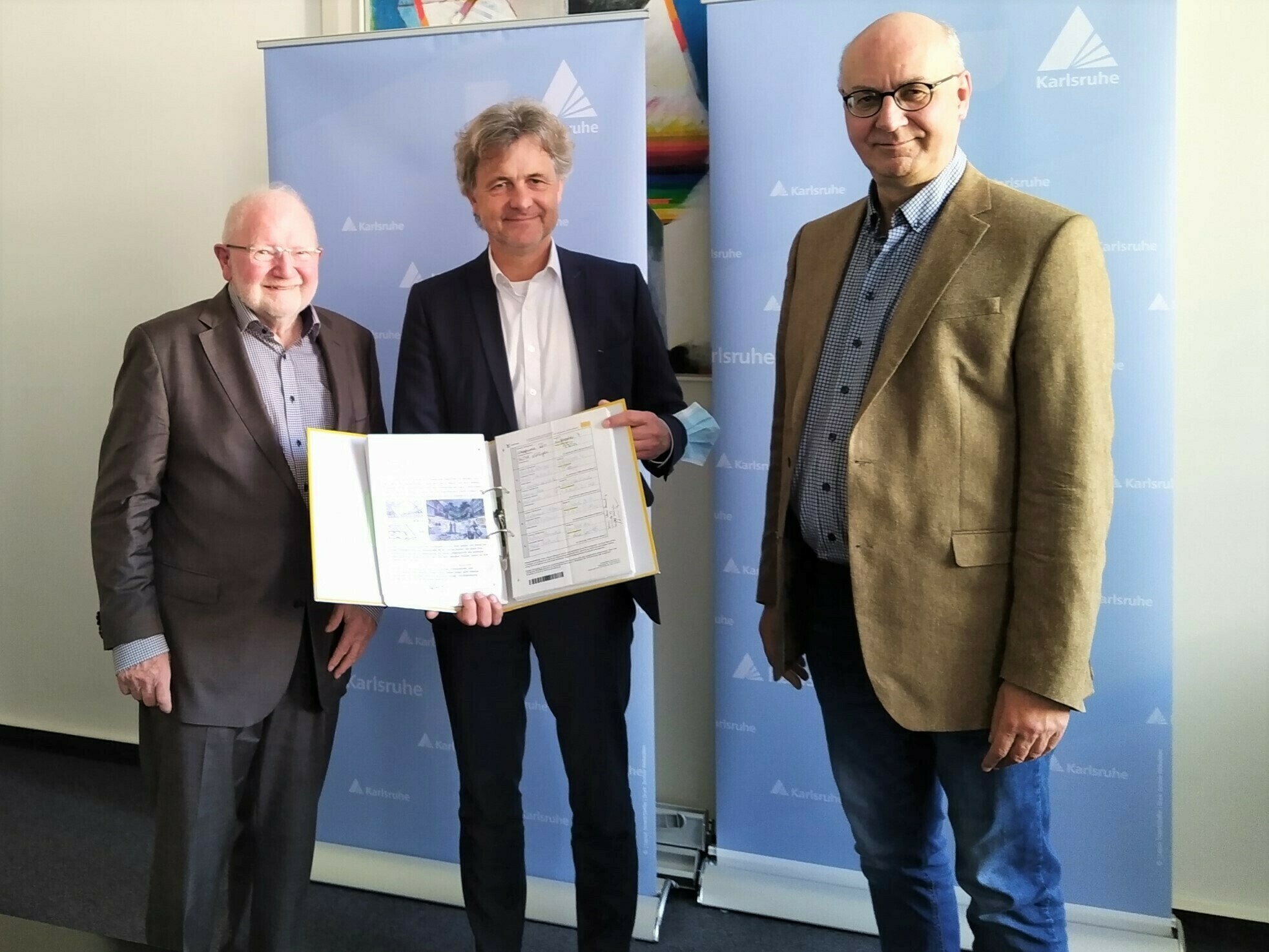 Am 27.10.2021 konnten wir die Petition mit Ihren Unterschriften bei einem Termin im Rathaus von Karlsruhe an Herrn Oberbürgermeister Dr. Frank Mentrup übergeben. Er war beeindruckt von dem noch bestehenden Interesse der Öffentlichkeit für das Projekt Sonnenfächer Karlsruhe. Er wird sich persönlich über den Status des Projektes informieren und zusammen mit der Stadtverwaltung und den Fraktionen im Gemeinderat über die Integration in die Neugestaltung der Innenstadt von Karlsruhe sprechen. Wir sind gespannt auf das Ergebnis