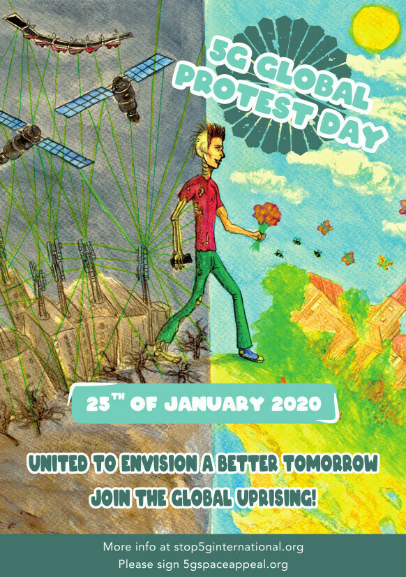Samstag, den 25. Januar 2020 - GLOBALER 5G-PROTESTTAG, mit Aktivitäten in vielen Ländern (Verlinkungen: Siehe Flugblatt Dateianhang). Der Protesttag wird global ausgerufen. Aktionen gibt es lokal in vielen Ländern. Machen wir unsere Besorgnisse sichtbar! Wenn nicht jetzt, wann dann?