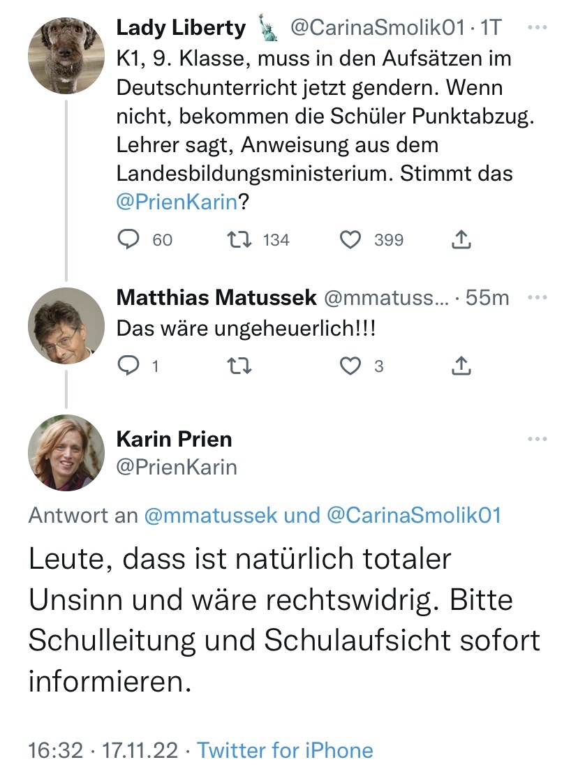 Um nur ein Beispiel zu nennen: Aktuell will die neue grüne IT-Leiterin der Stadt München, die ihren Doktor-Titel in Gender-Studies erwarb, 4 Mio € für die „gendergerechte“ Anpassung städtischer Formulare ausgeben (1). Dabei beruft sie sich auf das Bundesverfassungsgericht, das mit seinem Urteil zur dritten Option beim Geschlechtseintrag die öffentlichen Verwaltungen angeblich dazu verpflichtet habe, „alle Menschen korrekt anzusprechen“… Als täten wir das nicht schon längst, nämlich mit der Standardsprache!