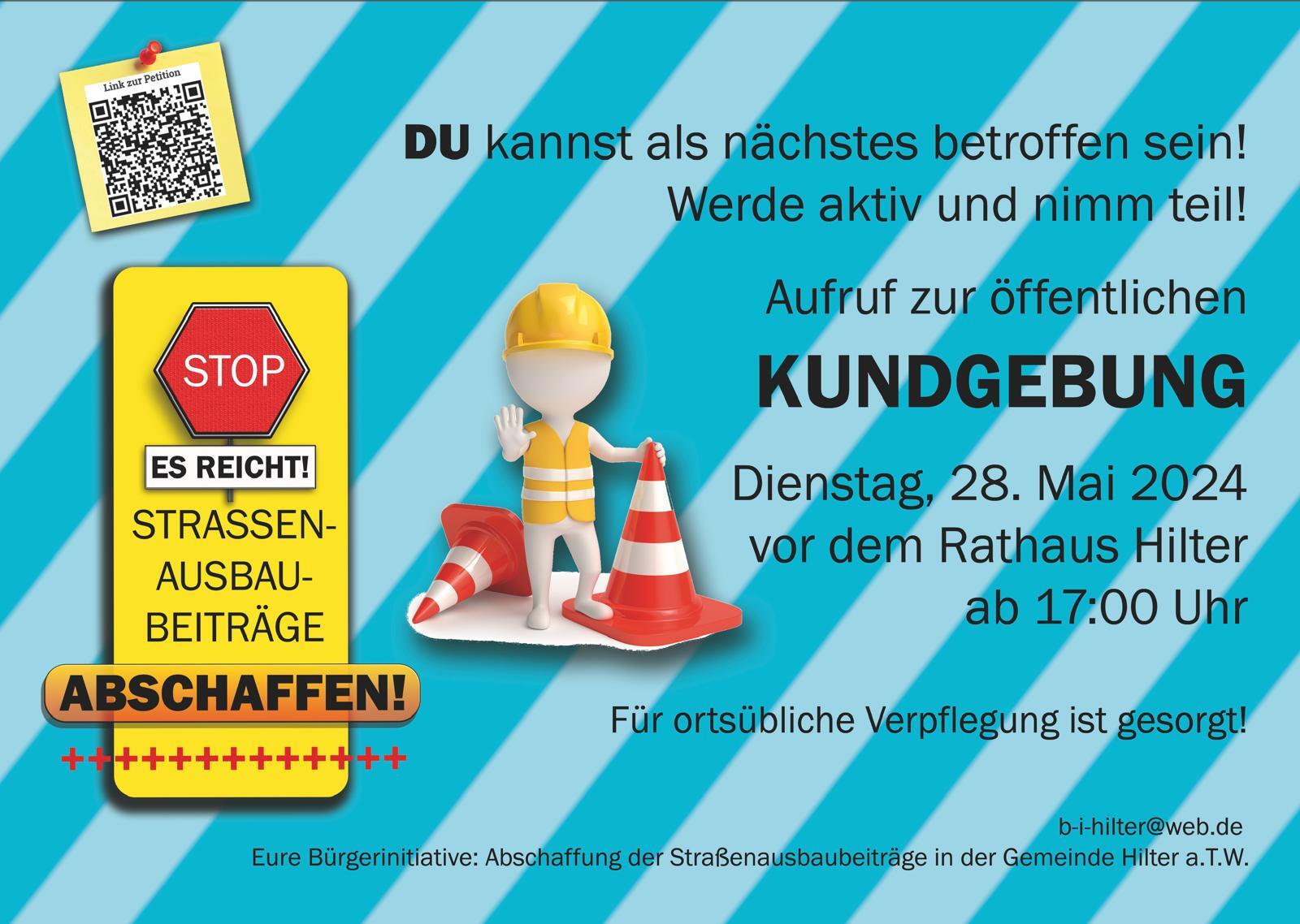 Hallo in die Runde, die BI möchte gemeinsam mit Euch die Straßenausbaubeiträge abschaffen, schaut euch das Bild an und kommt zahlreich vorbei...wir zählen auf jeden einzelnen von euch!