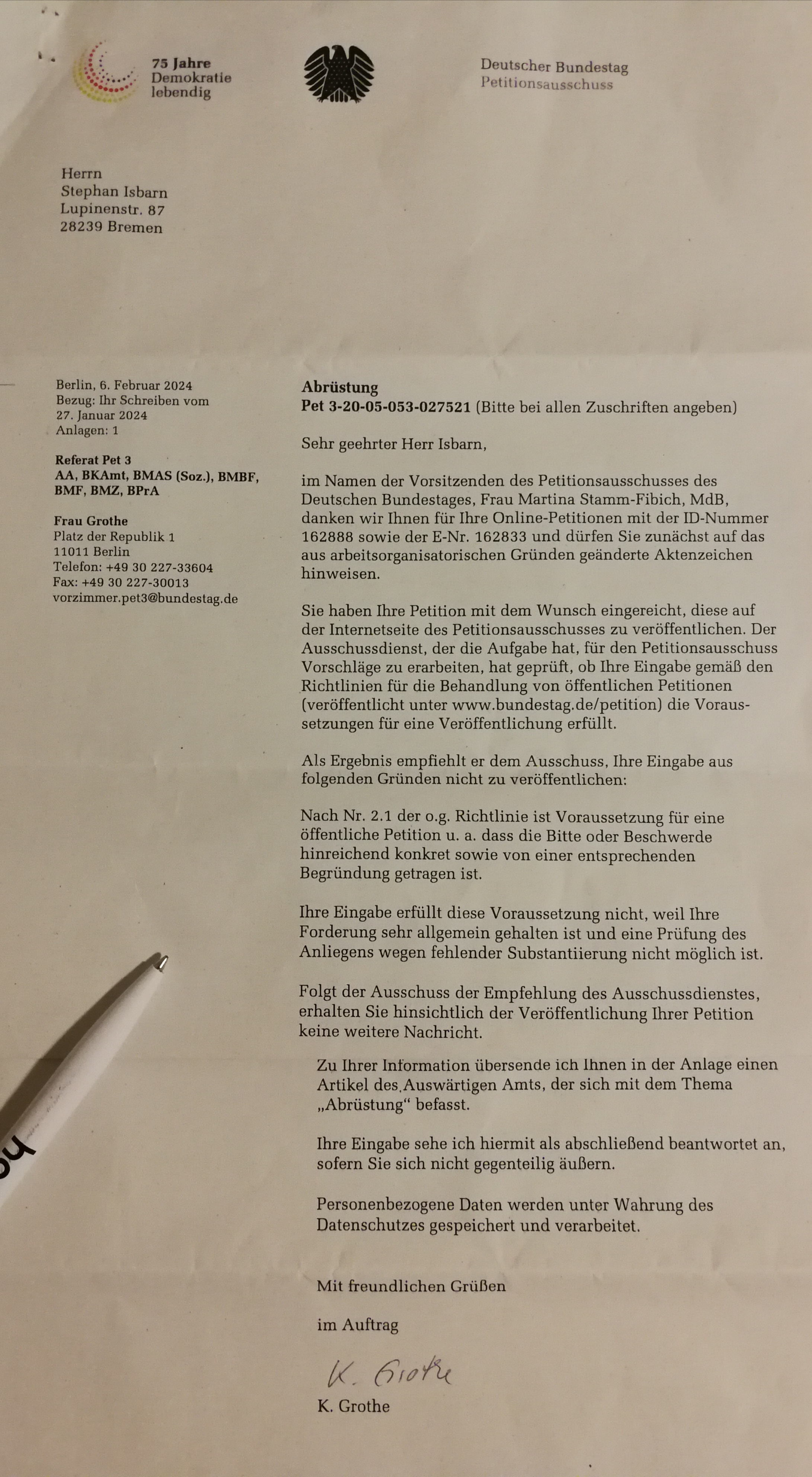 Da es nicht den Vorgaben einer Petition entsprochen hat, laut openpetition. xe