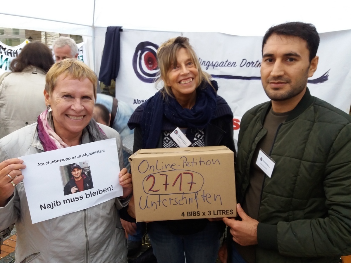 Wr danken Ihnen von ganzen Herzen für die Unterstützun unserer Forderung nach Stopp der Abschiebung von Najib Mohammady!. Naipb selbst fühlt sich durch Ihre Unterstützug in dieser für ihn so schweren zeit ein wenig getröstet und gestärkt. Inzwischen ist die Klage gegen den Abschiebungsbescheid eingereicht. Wir hoffen sehr, daas diese Klage erfolgreich sein wird, aber letzte Nachrichten über die Abweisungsrate von über 50% der Abschiebungsklagen von afghanischen Asylbewerbern erfüllt uns mit Bangigkeit und Sorge!