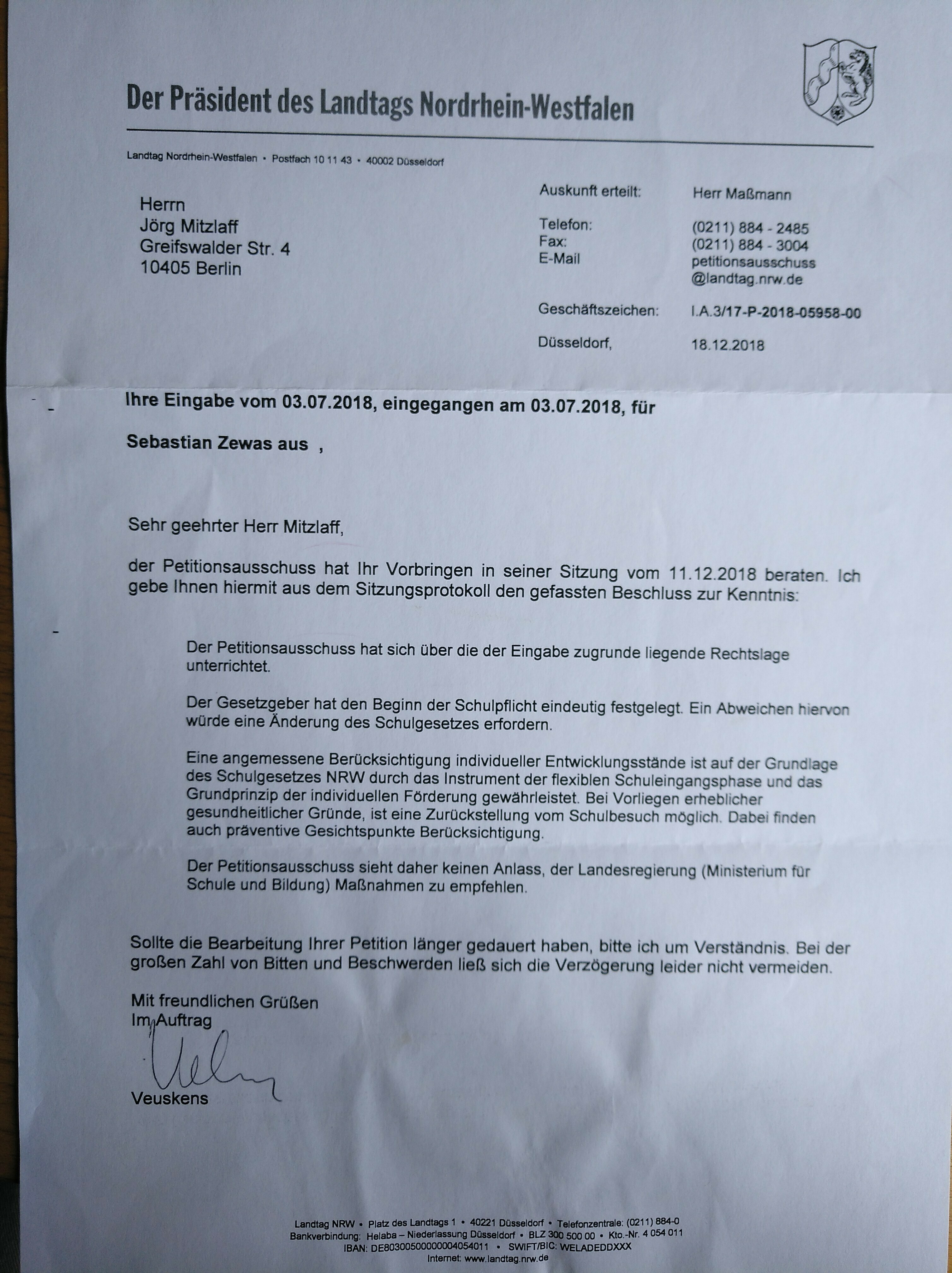 openPetition hat die von Ihnen unterstützte Petition offiziell im Petitionsausschuss von Nordrhein-Westfalen eingereicht. Jetzt ist die Politik dran: Über Mitteilungen des Petitionsausschusses werden wir Sie auf dem Laufenden halten und transparent in den Petitionsneuigkeiten veröffentlichen.