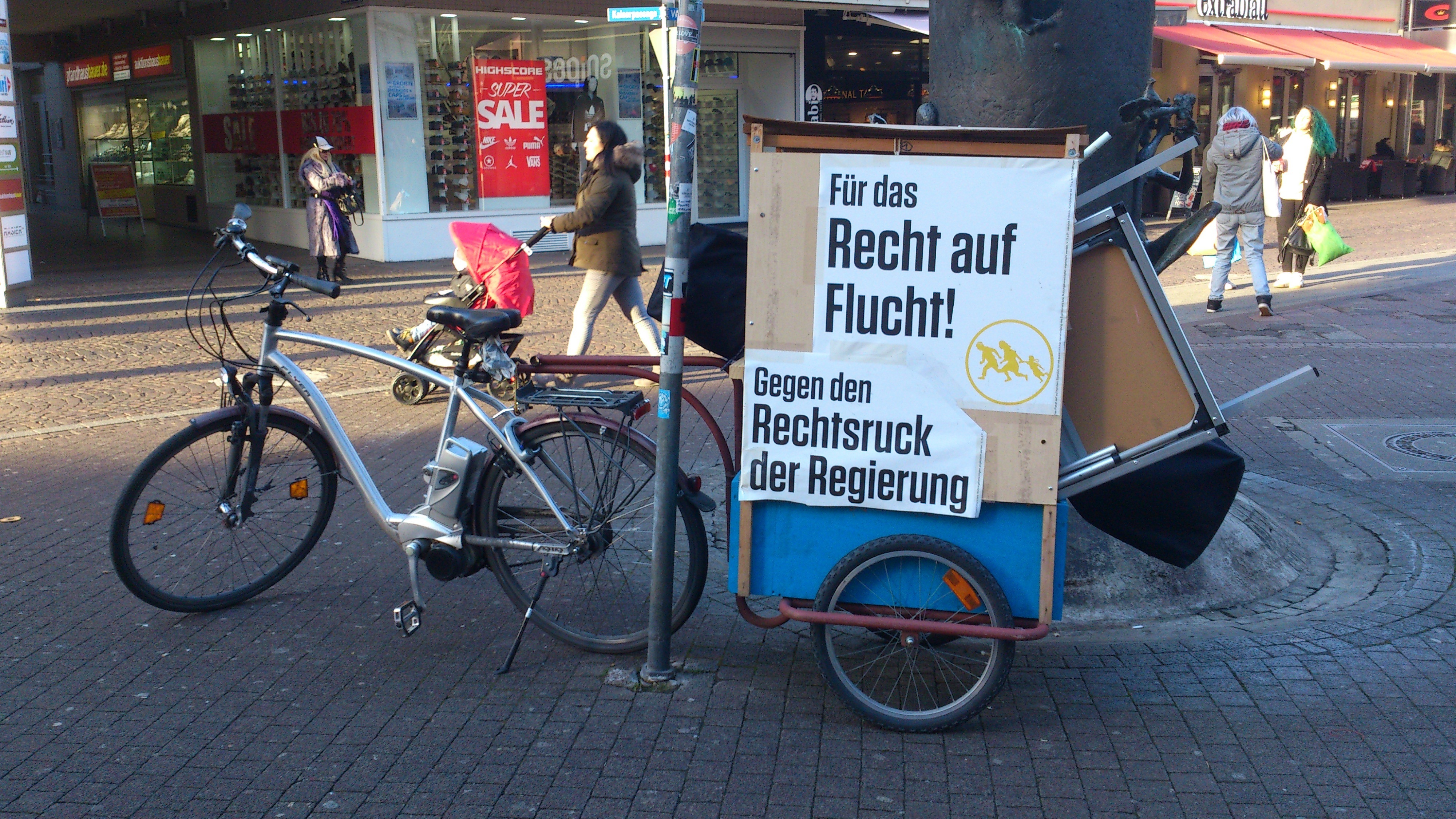 Drei Wochen lang wurde täglich von Montag bis Samstag zwischen 16.00 Uhr und 18.00 Uhr bei Wind und Wetter ein "Zelt der Solidarität" mit Alassa M. durchgeführt, der akut von Abschiebung bedroht ist. Vergangenen Samstag wurde vor zahlreichen Unterstützern von nah und fern am offenen Mikrofon eine kurzes Resümee gezogen: „Alassa steht beispielhaft für den Großteil aller Geflüchteten, die auf der Suche sind nach einem menschenwürdigen Leben. Weil Alassa nicht nur von einem besseren Leben träumt, sondern sich auch aktiv mit anderen Flüchtlingen, Migranten und Deutschen für ein besseres Leben einsetzt, ist er zum direkten Gegner der Rechtsentwicklung der Regierung und der Verschärfung und Aushöhlung des Asylrechts geworden. Aber Alassa kämpft nicht alleine! Das zeigen nicht nur die 24.000 Unterstützer der Petition auf Change.org, sondern auch das Zelt der Solidarität hier in Karlsruhe und seine zahllosen Unterstützer. Wir machen weiter bis Alassa sein Asyl erhält. Gemeinsam sind wir stark und können auch die Rechtsentwicklung der Regierung stoppen!“