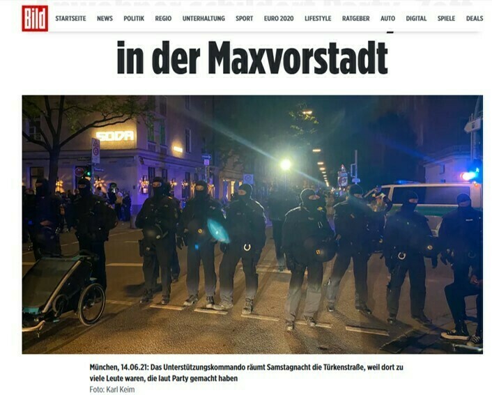 Bild Pressespiegel vom 19.06.2021 20.06.2021, 18:39 www.bild.de/regional/muenchen/muenchen-aktuell/verwuestung-und-laerm-hunderte-feiernde-polizei-raeumt-tuerkenstrasse-76809016.bild.html
