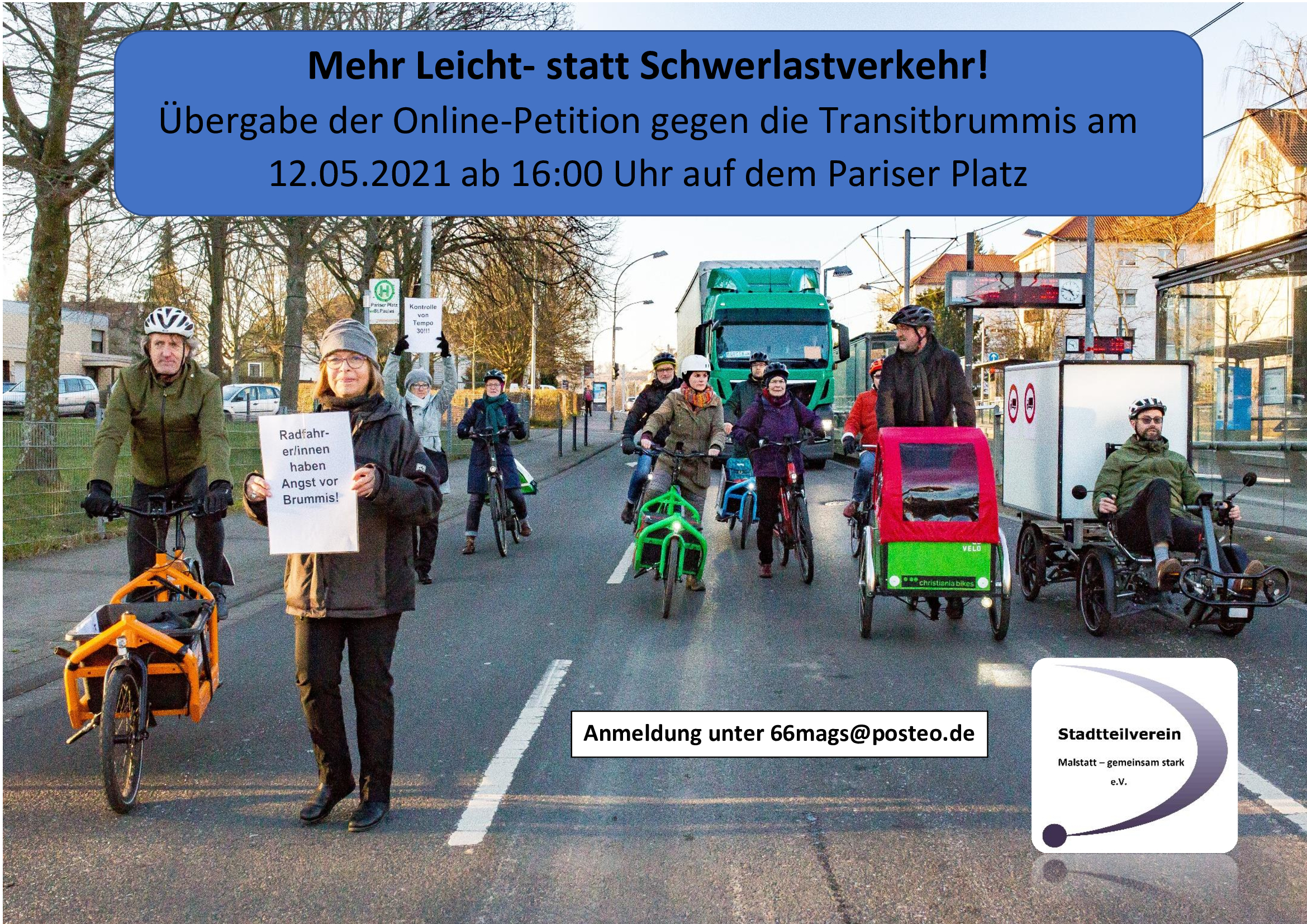 Liebe Unterstützer*innen des Transitschwerlastverbotes in der Lebacher Straße, wir haben heute 555 Stimmen erreicht und werden mit dieser Unterschriften-Anzahl die Petition am Mittwoch an die Verantwortlichen aus Stadt und Land überreichen.
