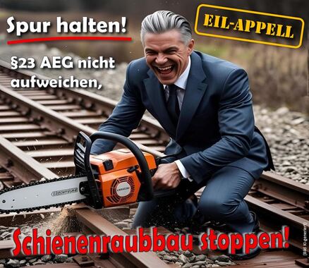 Um den Protest dagegen sichtbarer zu machen, haben wir erneut eine Petition auf den Weg gebracht. Diese stimmt für den Erhalt des § 23 AEG in seiner aktuellen Form – und appelliert zudem an einen verantwortungsvollen Umgang mit gewidmeten Grundstücken für Bahnanlagen.