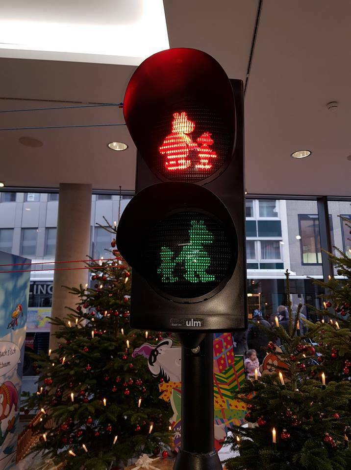 Der Bauhof der Stadt Ulm hat mit Unterstützung der Firma Swarco als "Muster" eine Äffle & Pferdle-Ampel "gebastelt", die aktuell bei der Ausstellung "Äffle & Pferdle unterm Weihnachtsbaum" der Sparkasse Ulm (Neue Mitte), Hans-und-Sophie-Scholl-Platz 2, 89073 Ulm, noch bis zum 8. Januar 2019 zu sehen ist. Dort kann jeder vorbeischauen und sich persönlich davon überzeugen, wie toll die Ampel aussieht!
