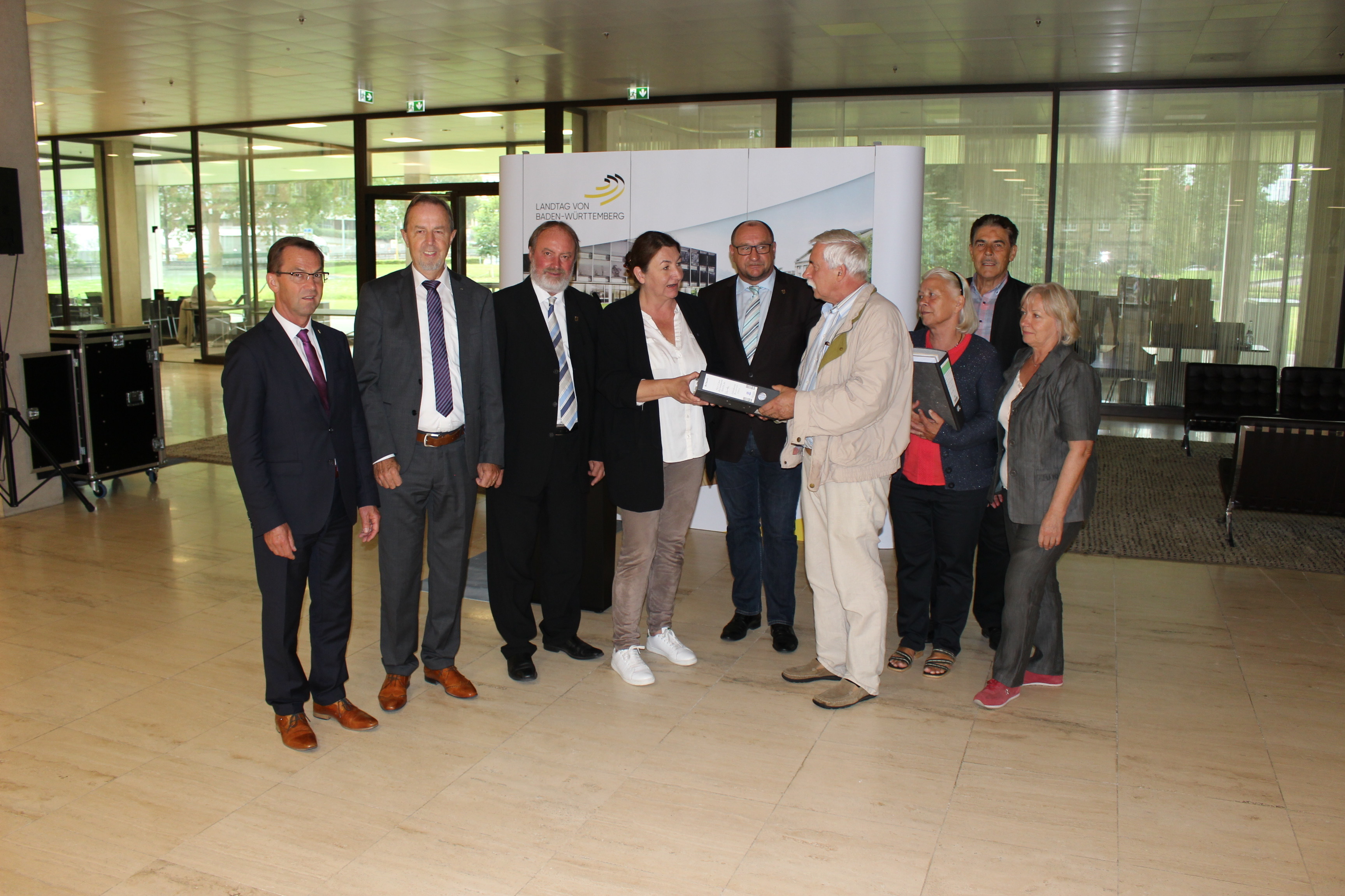 Am 20.7.2017 wurde im Landtag von Baden Württemberg die 9001 Stimmen umfassende Petition - Aufhebung Tempo 30 innerorts auf Hauptdurchgangsstraßen im Bodenseekreis - der Vorsitzenden des Petitionsausschusses, die Abgeordneten. Beate Böhlen (GRÜNE) übergeben. Die Übergabe fand im Beisein des stellvertretenden Vorsitzenden des Petitionsausschusses, des Abgeordneten. Norbert Beck (CDU) und weiteren Abgeordneten. des Landtags , Karl Zimmermann (CDU), Jürgen Keck und Klaus Hoher (FDP) sowie meinen Begleitern Rudi und Anita Eigner, sowie meiner Ehefrau Adelheid Wanke statt. Die Vorsitzende des Petitionsausschusses kündigte mir eine genaue Prüfung der Petition an. Zwei gefüllte Leitzordner mit Petitionsmaterial, Fachbeiträgen, Gesetzestexten und Vorschriften, Presseberichten wurden übergeben. 150 Arbeitsstunden in Einlesen von Fachliteratur und Verfassen der Petition wurden in Anspruch genommen.