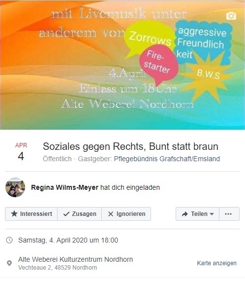 Am 4.4. ab 18 Uhr in der alten Weberei Nordhorn.
