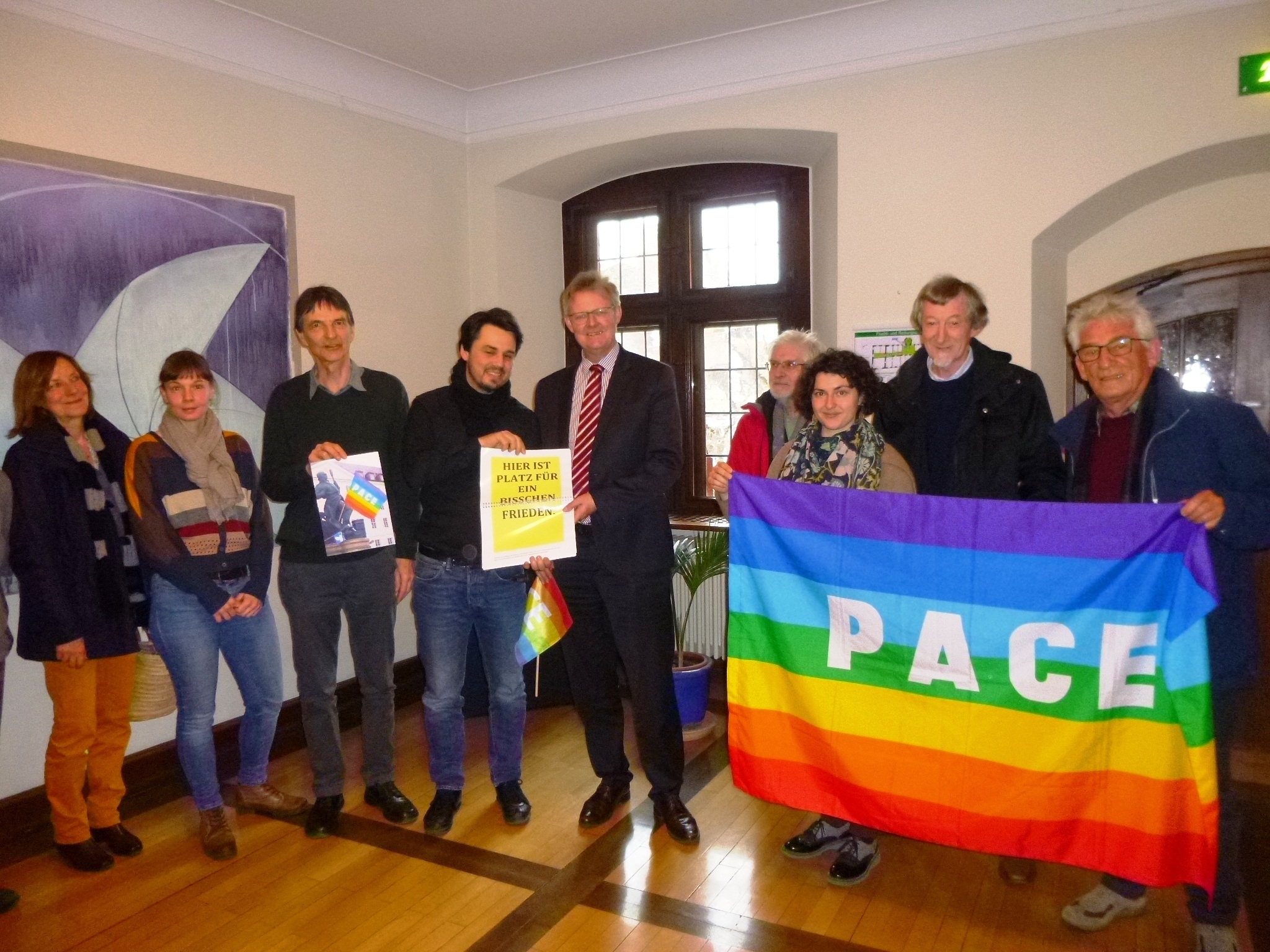 Heute hat die Initiative zur Platzbenennung am Siegesdenkmal, einem losen Bündnis aus friedensbewegten Menschen und Organisationen das Ergebnis einer Onlinepetition an den zuständigen Bürgermeister Herrn von Kirchbachim Dezernat III für Kultur, Integration, Soziales und Senioren übergeben.