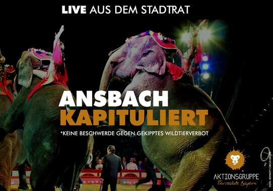 Mit 18 zu 16 Stimmen hat der Stadtrat Ansbach vor wenigen Stunden beschlossen, dass gegen das VG Ansbach Urteil KEINE Beschwerde eingelegt wird. Somit ist klar: Circus Krone kommt ab Mitte Oktober auf den Messeplatz nach Ansbach. Dass gerade die SPD das Zünglein an der Waage war ist erbärmlich. Ist es doch die SPD die auf Bundesebene seit vielen Jahren ein Verbot von wilden Tieren in ganz Deutschland fordert. Mit den Stimmen der SPD hätte Ansbach morgen Einspruch gegen das Urteil eingelegt.