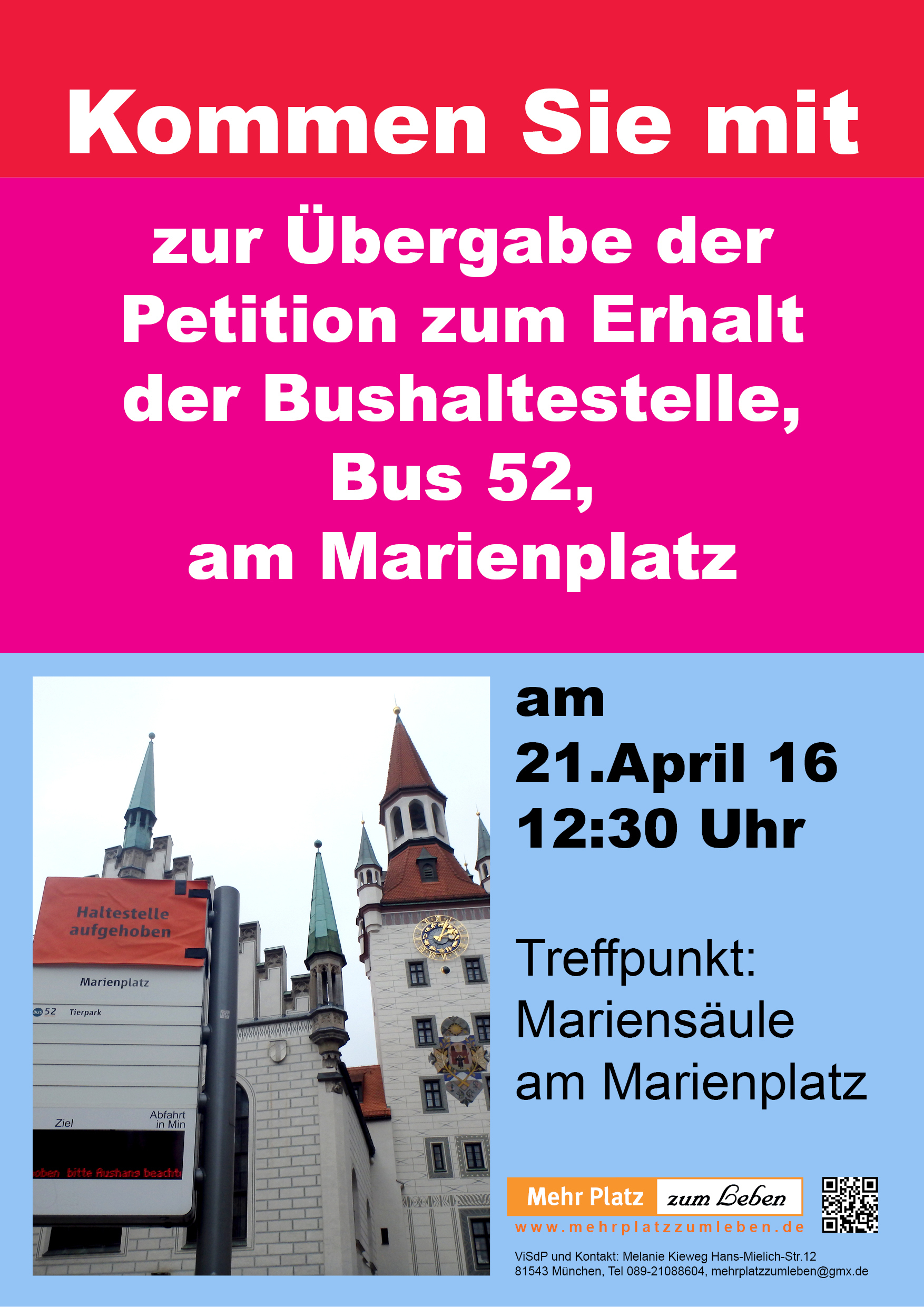 Kommen Sie mit zur Übergabe der Petition am Marienplatz
