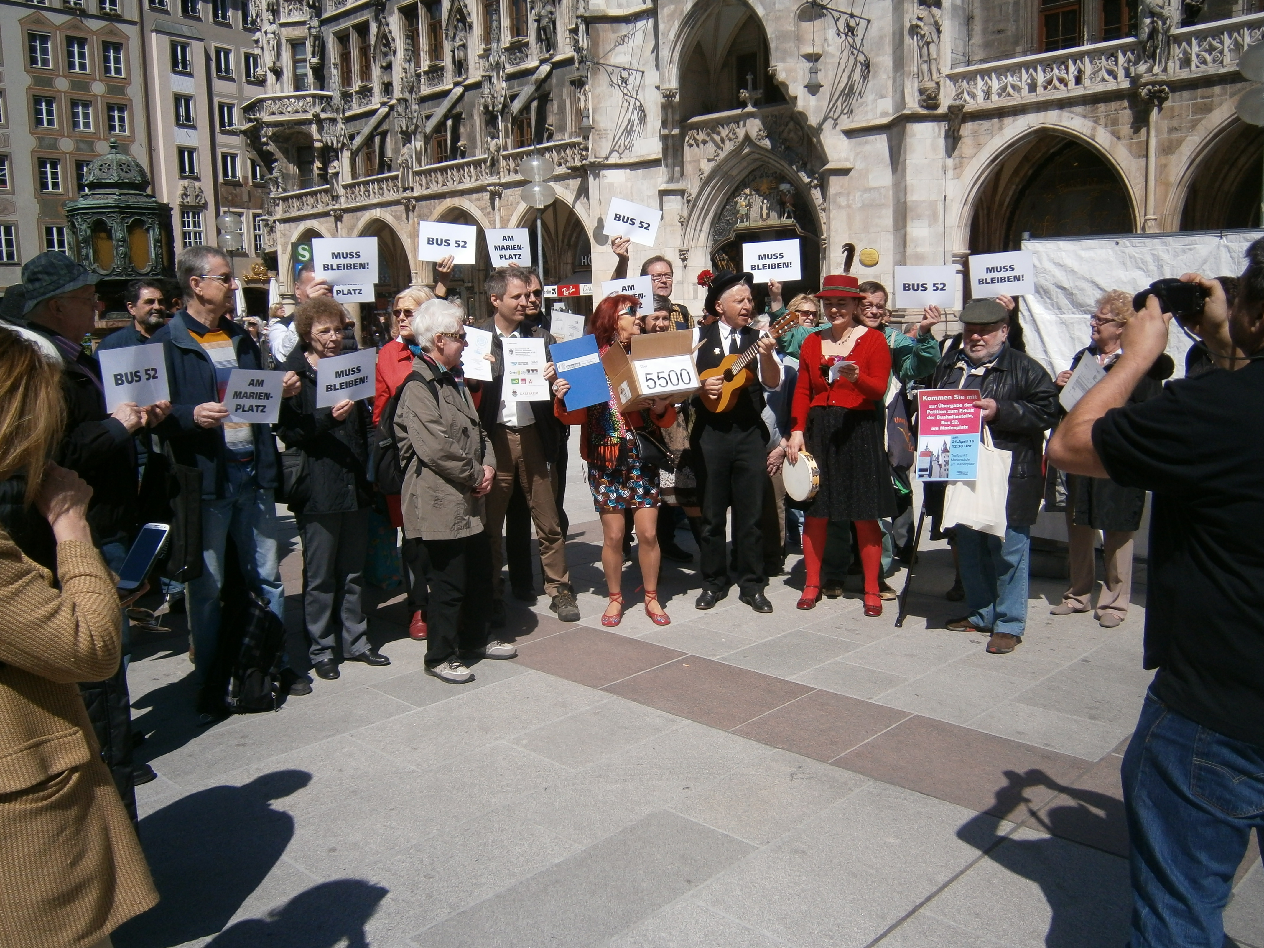 An der Mariensäule sammelten sich die Unterstützer zur Übergabe und die Isarschiffer stimmten mit einem extra getexteten Song auf die Übergabe ein.