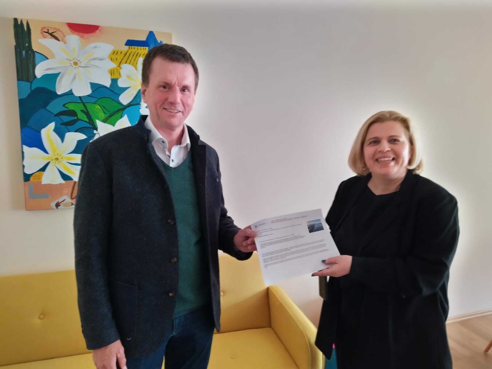 Als eine von mittlerweile über 550 Unterzeichner*innen der Petition “DACH UND AUFZUG FÜR DEUTSCHLANDS “SCHÖNSTEN” SEEBAHNHOF!”, kam auch das Thema kurzfristige Lösung am Starnberger Seebahnhof zur Sprache. Frau Bubendorfer-Licht, MdB überreichte die Petition (anbei erhalten Sie ein Bild der Übergabe). Thema des Gesprächs war zudem der Vorschlag von Wörsching Ingenieure GmbH für eine kurzfristige Lösung am Starnberger Seebahnhof.