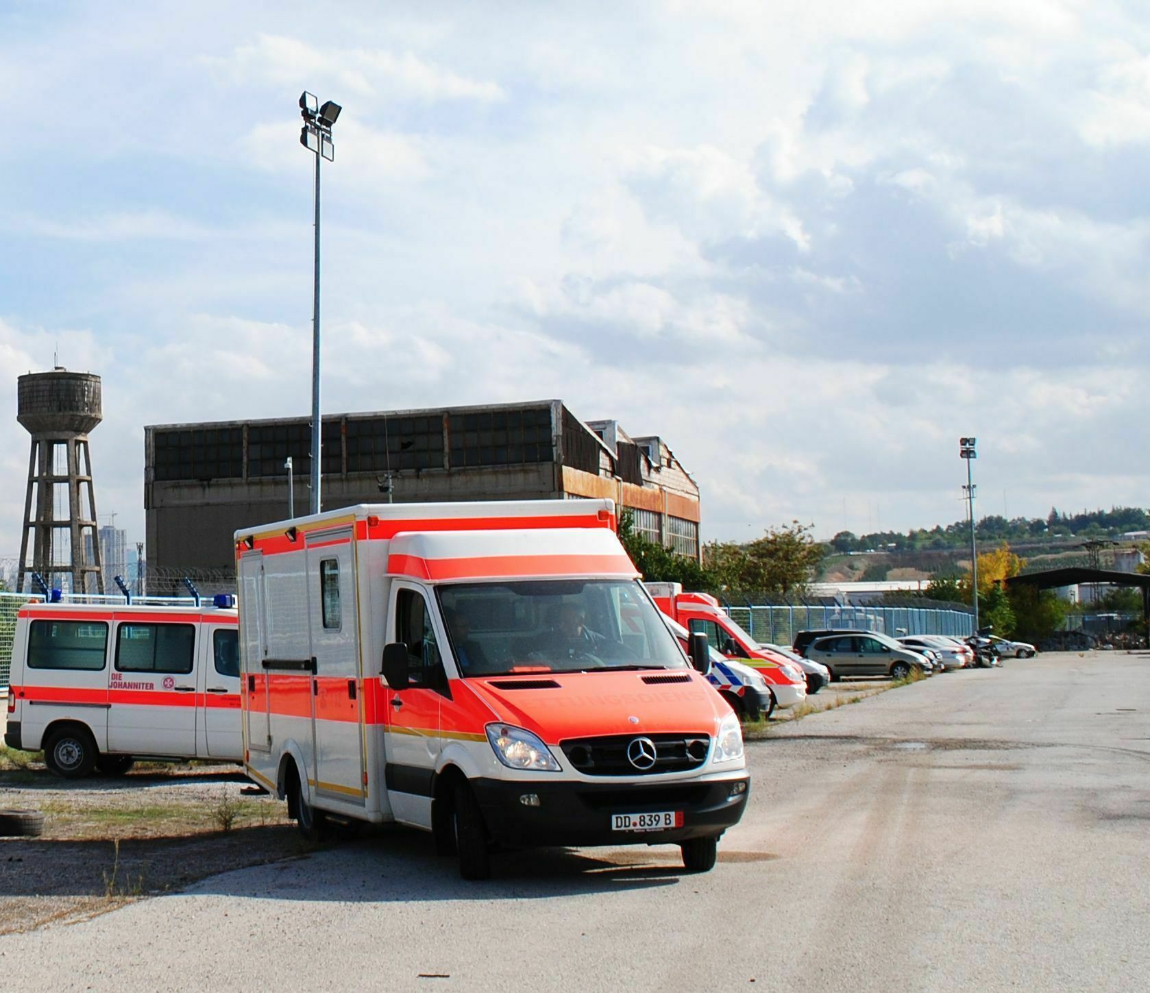 We are attaching a photo that was taken last October. After having negotiated for two days, we were allowed to take our ambulance out from the customs warehouse parking lot. And off we went, all the way back to Greece.