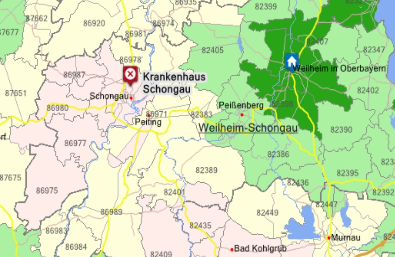 Die erste Klinikschließung 2024 in Bayern: 28.000 EinwohnerInnen rund um Schongau erreichen kein Allgemeinkrankenhaus mit Basisnotfallversorgung mehr binnen 30 Fahrzeitminuten: GKV-Kliniksimulator!