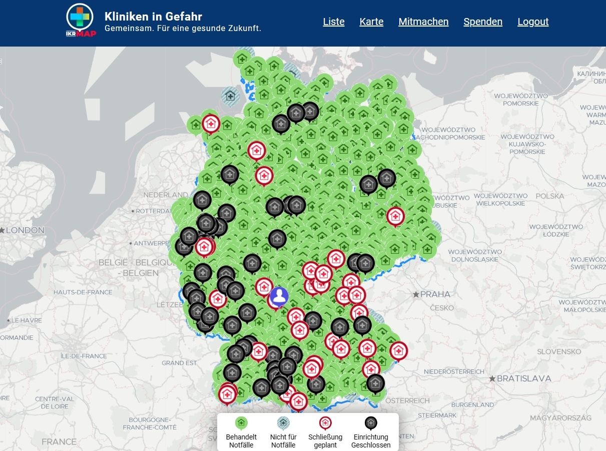 Unsere Bayern-Klinikkarte wurde in eine deutsche Klinikkarte weiterentwickelt. Schauen Sie einfach rein: