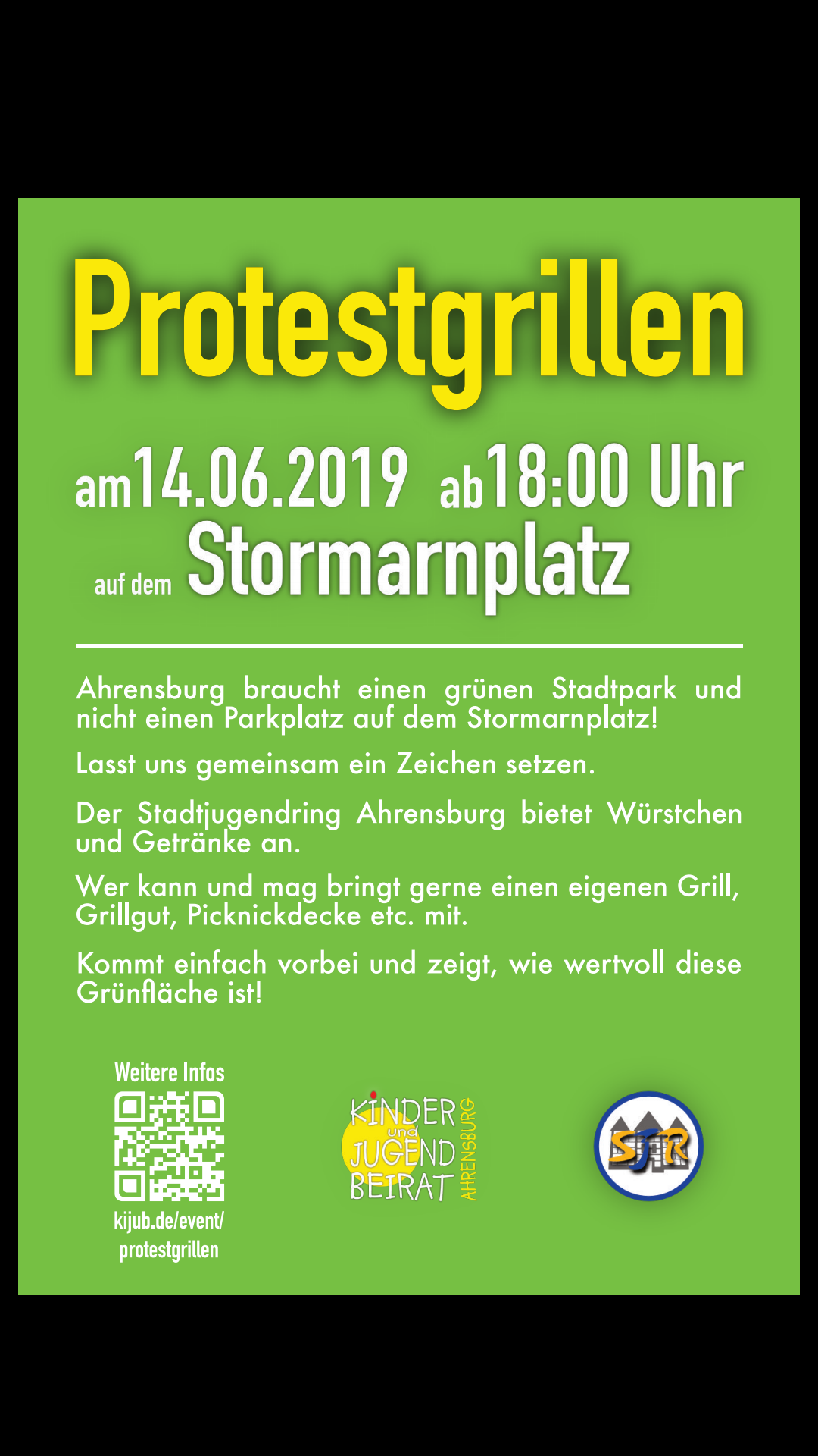 am 14.Juni ab 18Uhr veranstaltet der Stadtjugendring Ahrensburg e. V. auf dem Stormarnplatz ein Protestgrillen.