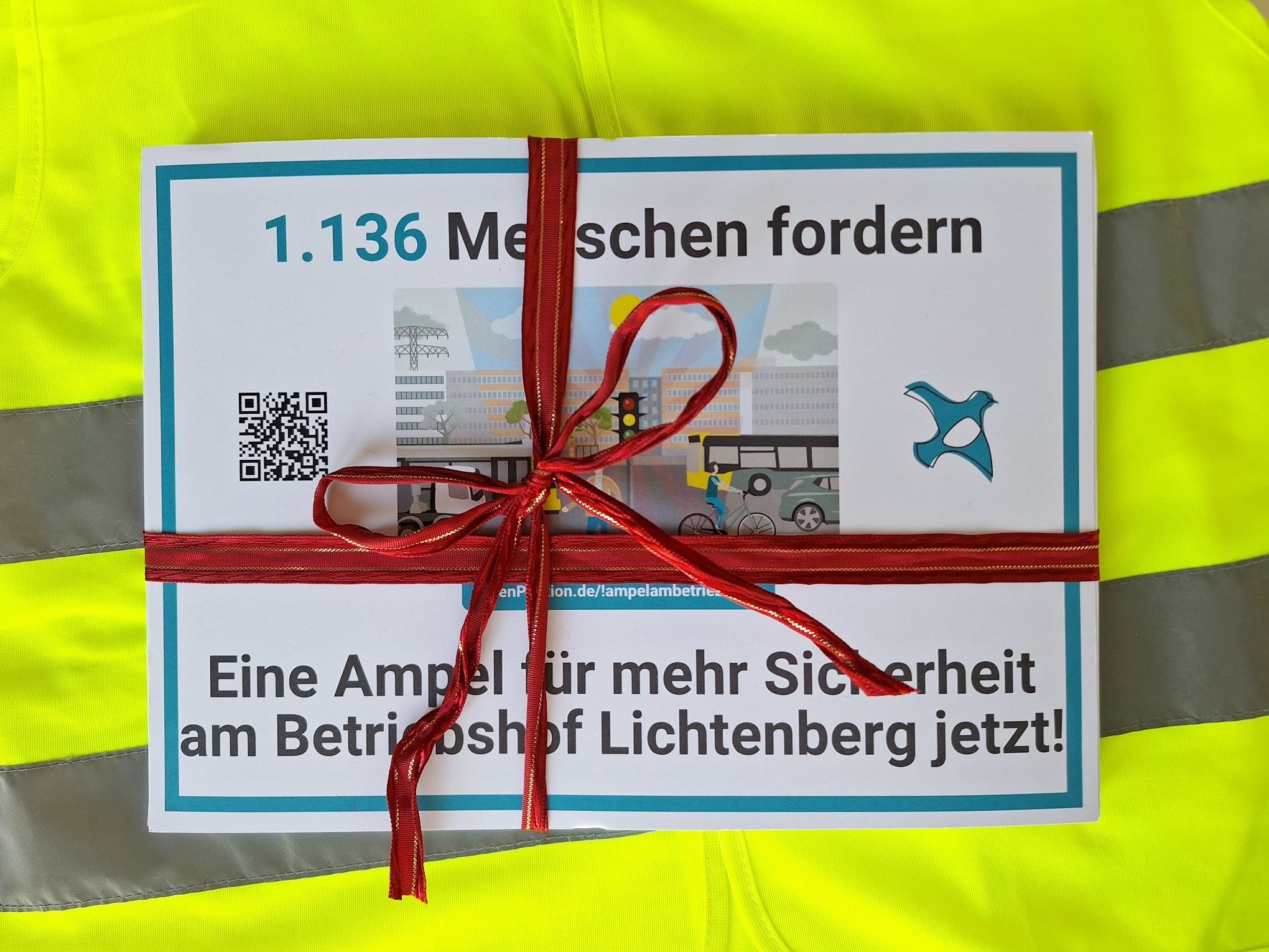 wir melden uns heute bei Ihnen, weil wir Neuigkeiten zu unserer Petition für eine Ampel am Betriebshof Lichtenberg haben!