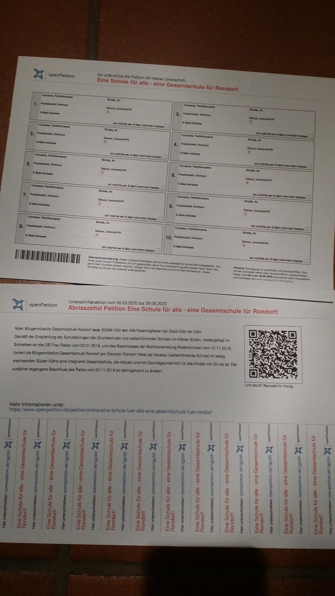 3. Nutzt die Unterschriftenliste der Petition www.openpetition.de/pdf/unterschriftenformular/eine-schule-fuer-alle-eine-gesamtschule-fuer-rondorf, sammelt Unterschriften im Einzelhandel und bei Nachbarn und ladet die Listen auf die Petitionsseite