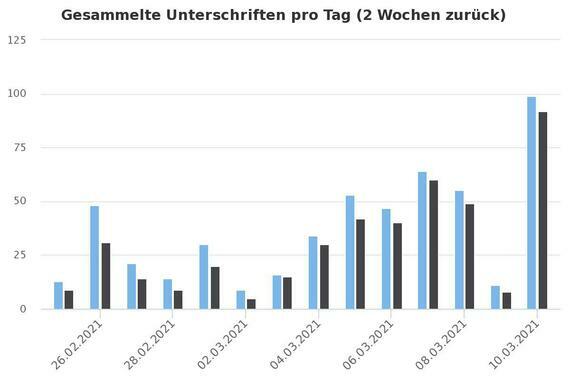 Start der Petition war am 17. Februar 2021. Seitdem ist viel passiert. Die Zahl der Unterschriften geht durch die Decke.
