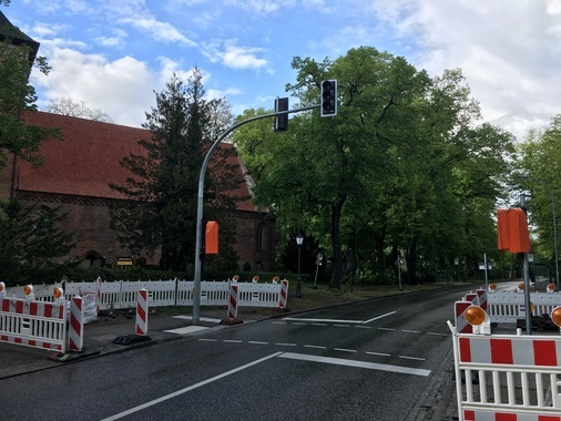 Wie versprochen ist die Ampel in den Osterferien gebaut worden und wie man sieht, ist die so gut wie fertig. Es fehlen vielleicht noch ein paar Details, aber im Großen und Ganzen ein gutes Ergebnis. Selbst der abgesenkte Bordstein sieht nicht provisorisch aus und somit ist die Ampel auch barrierefreie Vielen Dank an die entsprechenden Behörden für die Planung und Umsetzung.