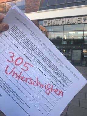 Die Petition wurde eingereicht 19.11.2019, 13:38 Der Bürgermeister hat die Petition entgegen genommen und reicht sie weiter an die Verkehrsbehörden. Das ganze mit Nachdruck hoffentlich. Siehe Details in meinem letzten Blog Eintrag.