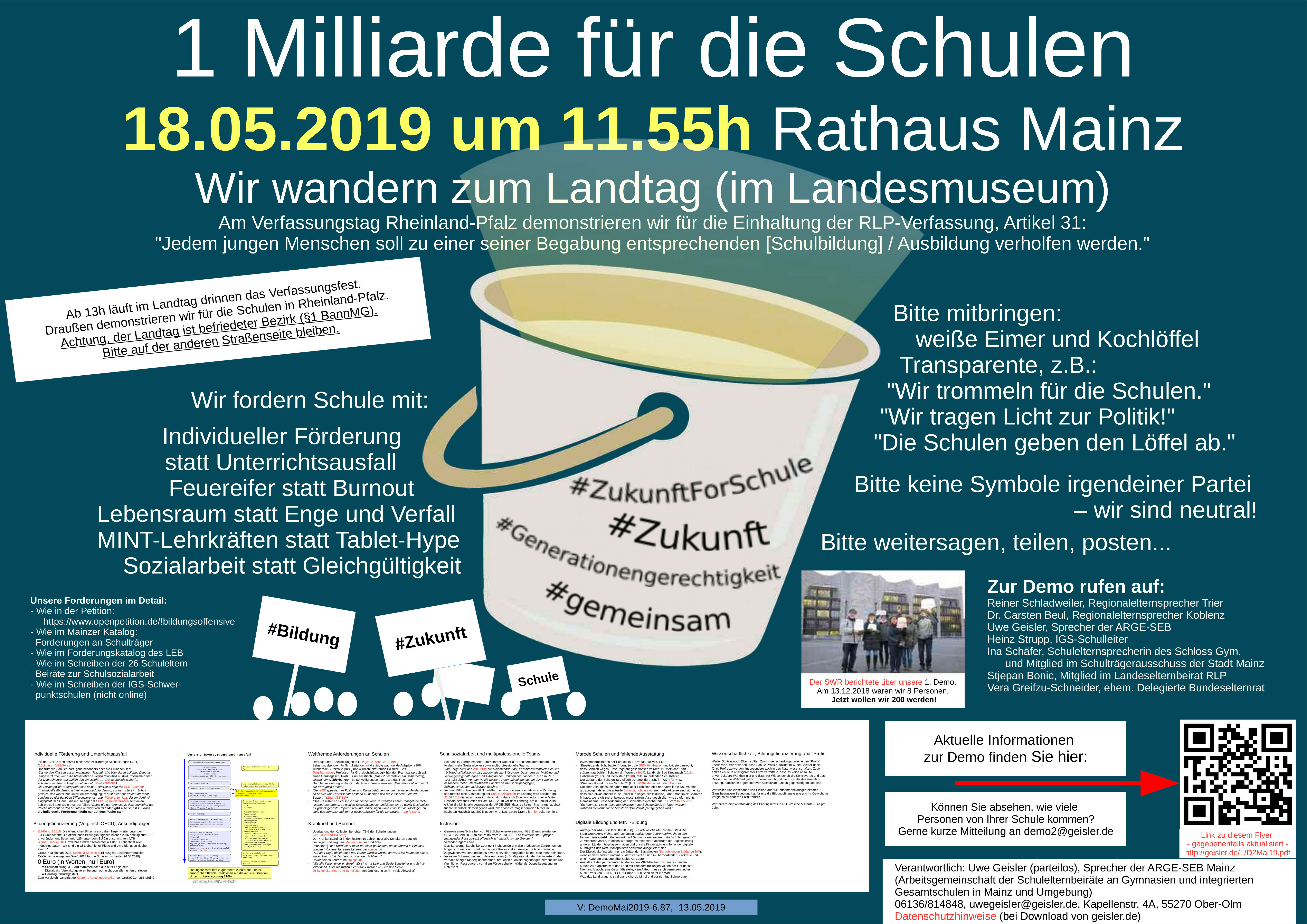 hiermit rufen wir auf zur 4. Demonstration "#1Milliarde für die Schulen"