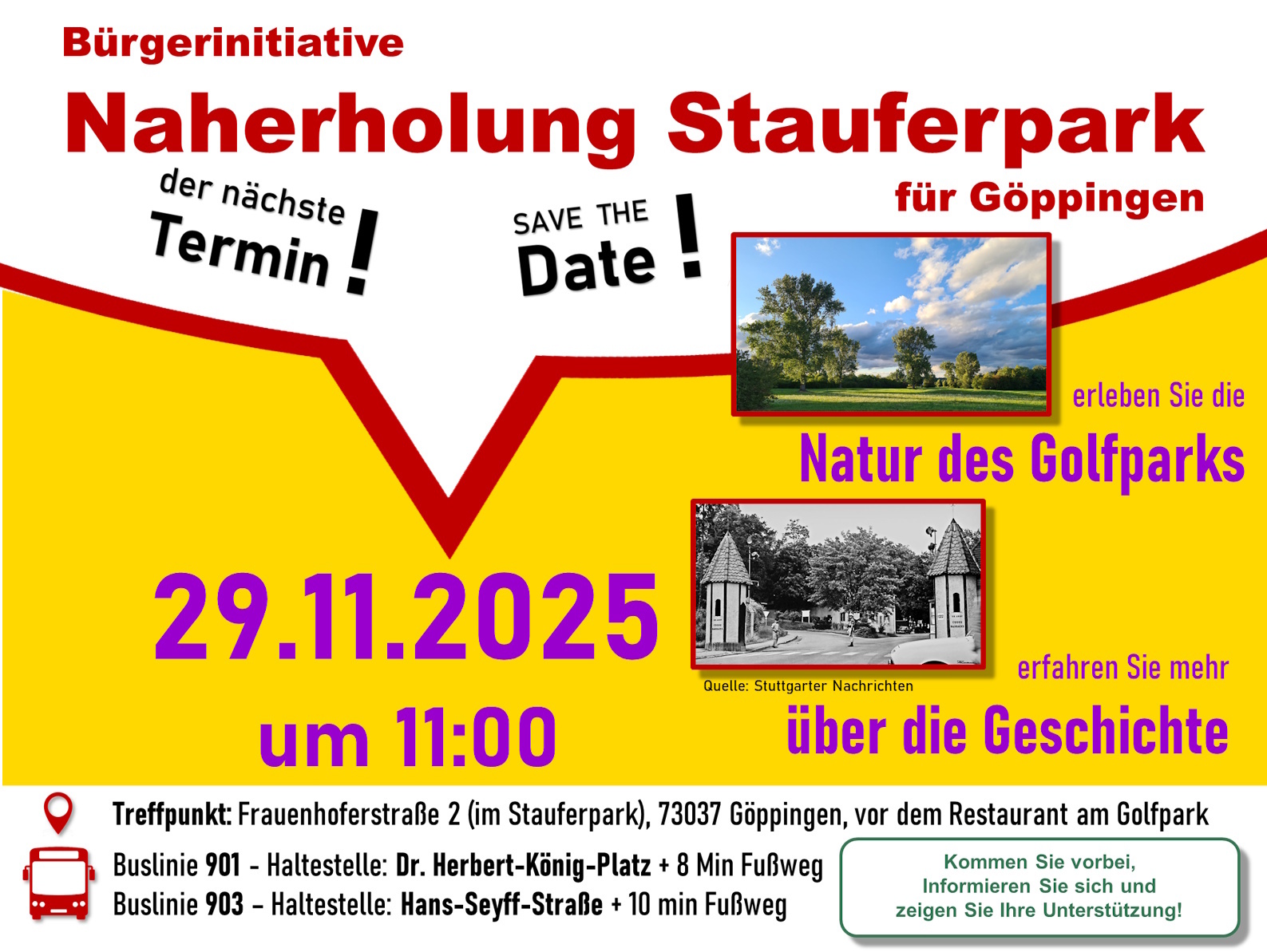Liebe Unterstützer unserer Bürgerinitiative Naherholung Stauferpark für Göppingen.