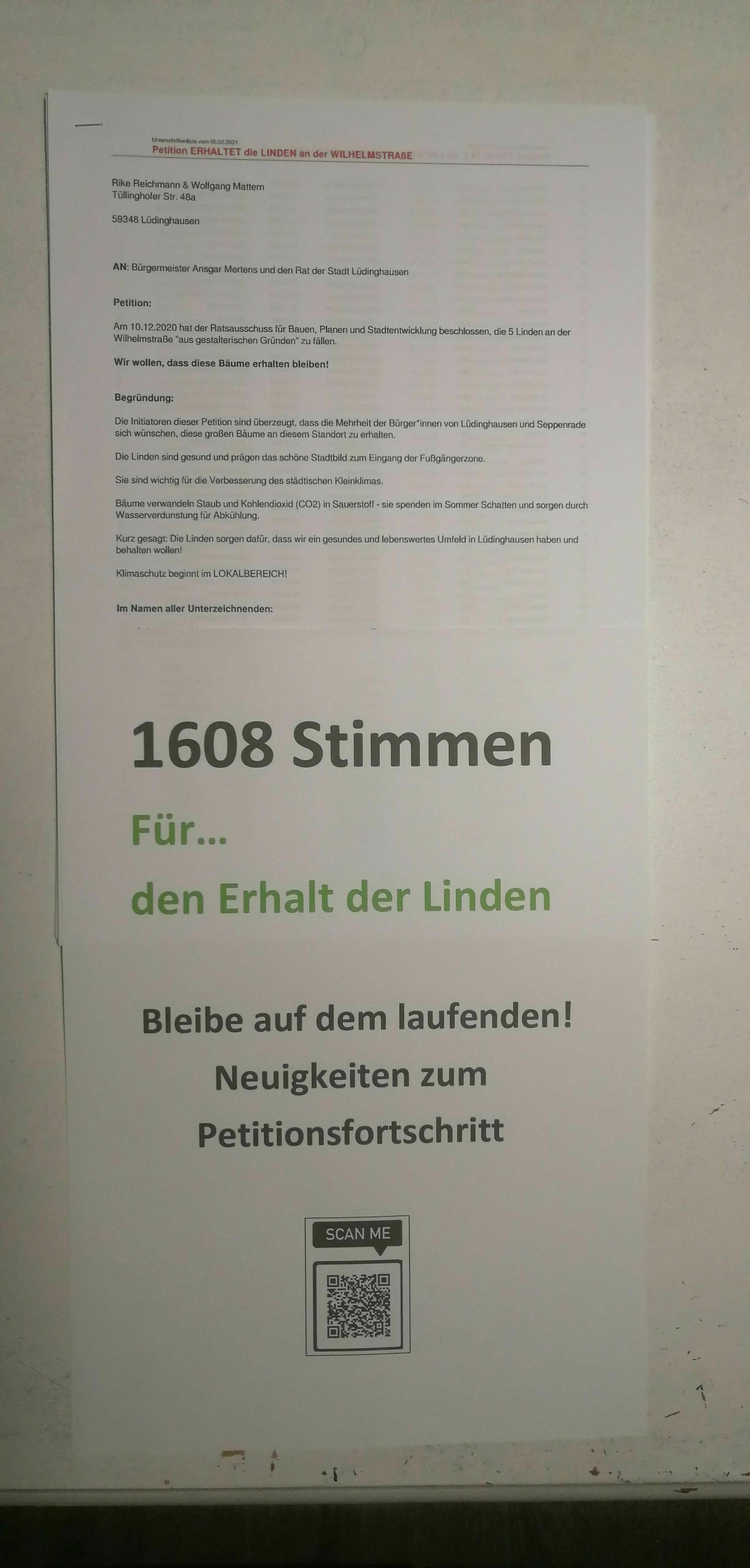 für unsere gemeinsame Bürger-Petition "Lindenerhalten" endet am: