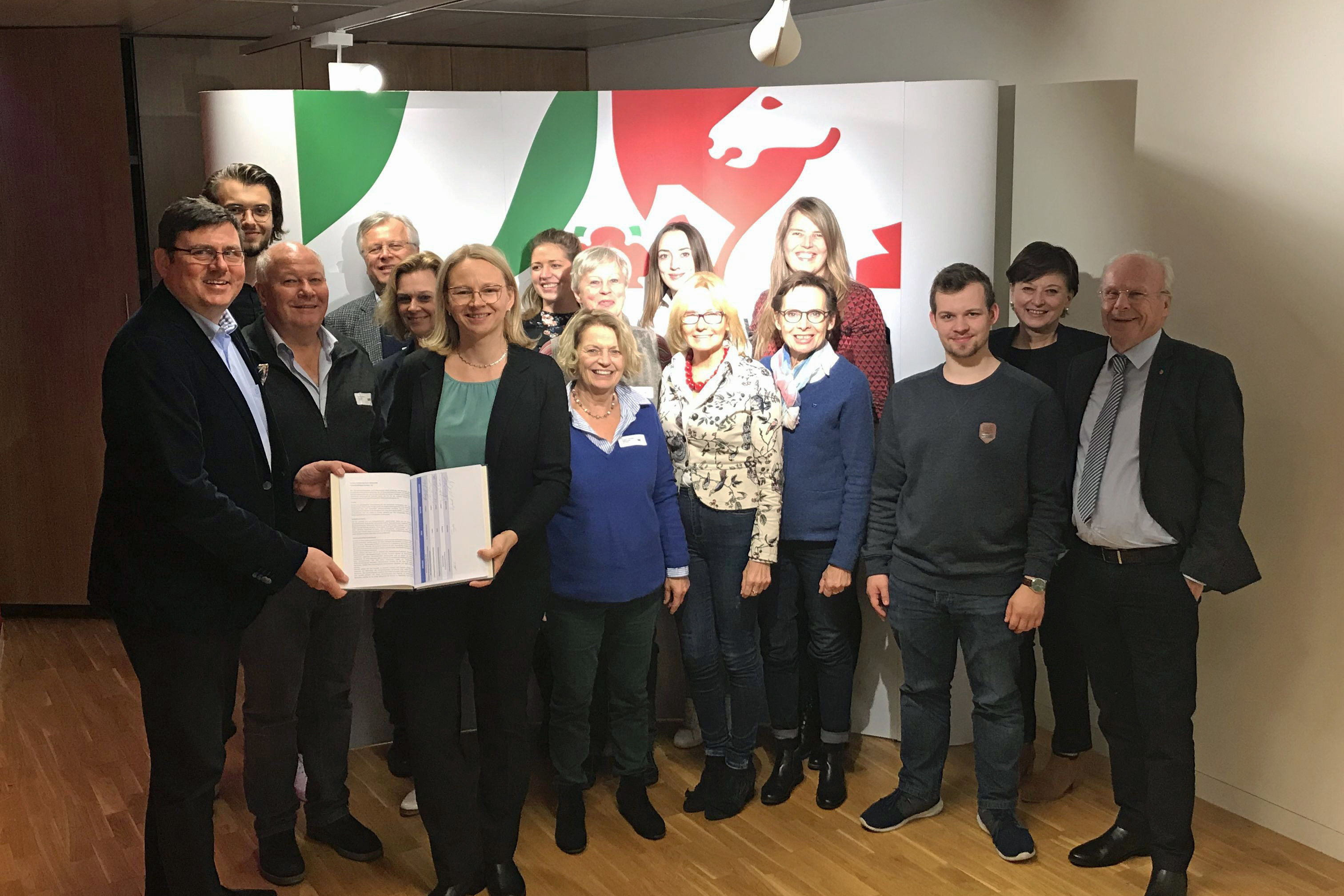 „Flagge zeigen für Europa!“ - unter diesem Motto hatte die Initiative „Europa-Erklärung Kreis Gütersloh“ zur Teilnahme an der Europawahl im Mai aufgerufen. Jetzt hat die Arbeitsgruppe die Europa-Erklärung an die politischen Vertreterinnen und Vertreter des Kreises Gütersloh in Brüssel überreicht.