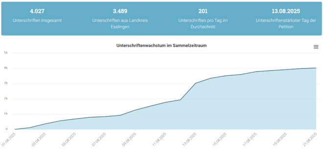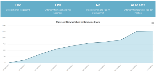 Unterschriften zum Zeitpunkt der Änderung: 830 (744 in Landkreis Esslingen)