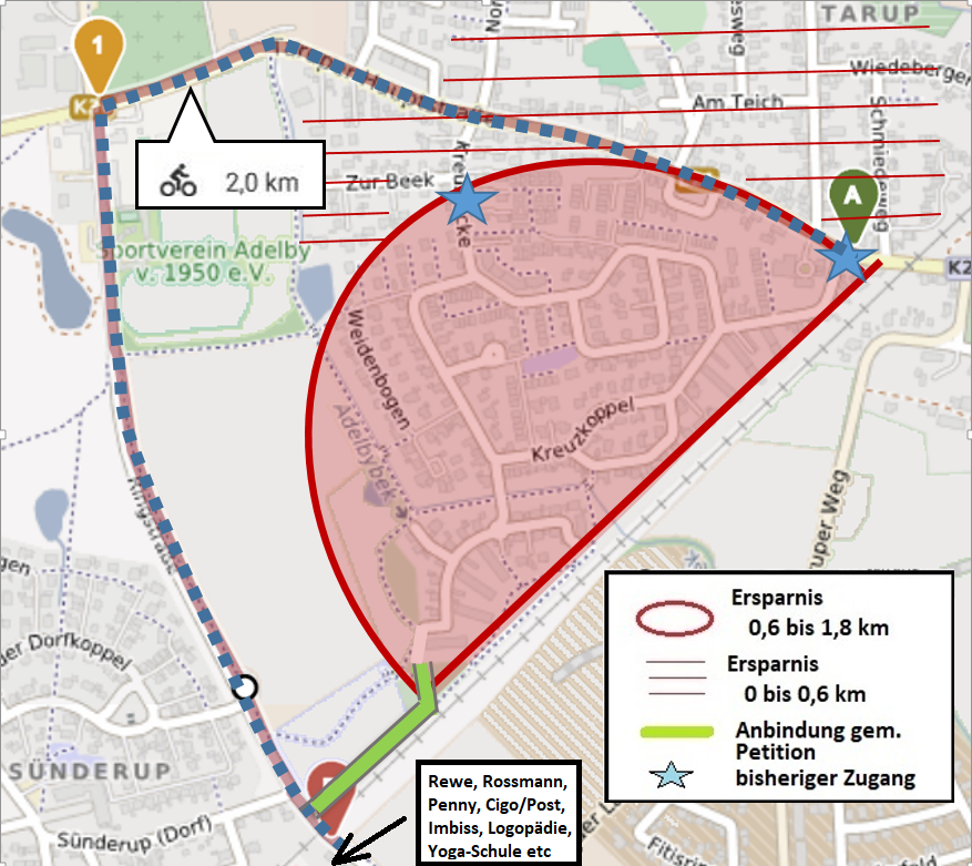 Fahrradgeeignete Verbindung zwischen Tarup-Süd und Hochfeld (Lückenschluss)