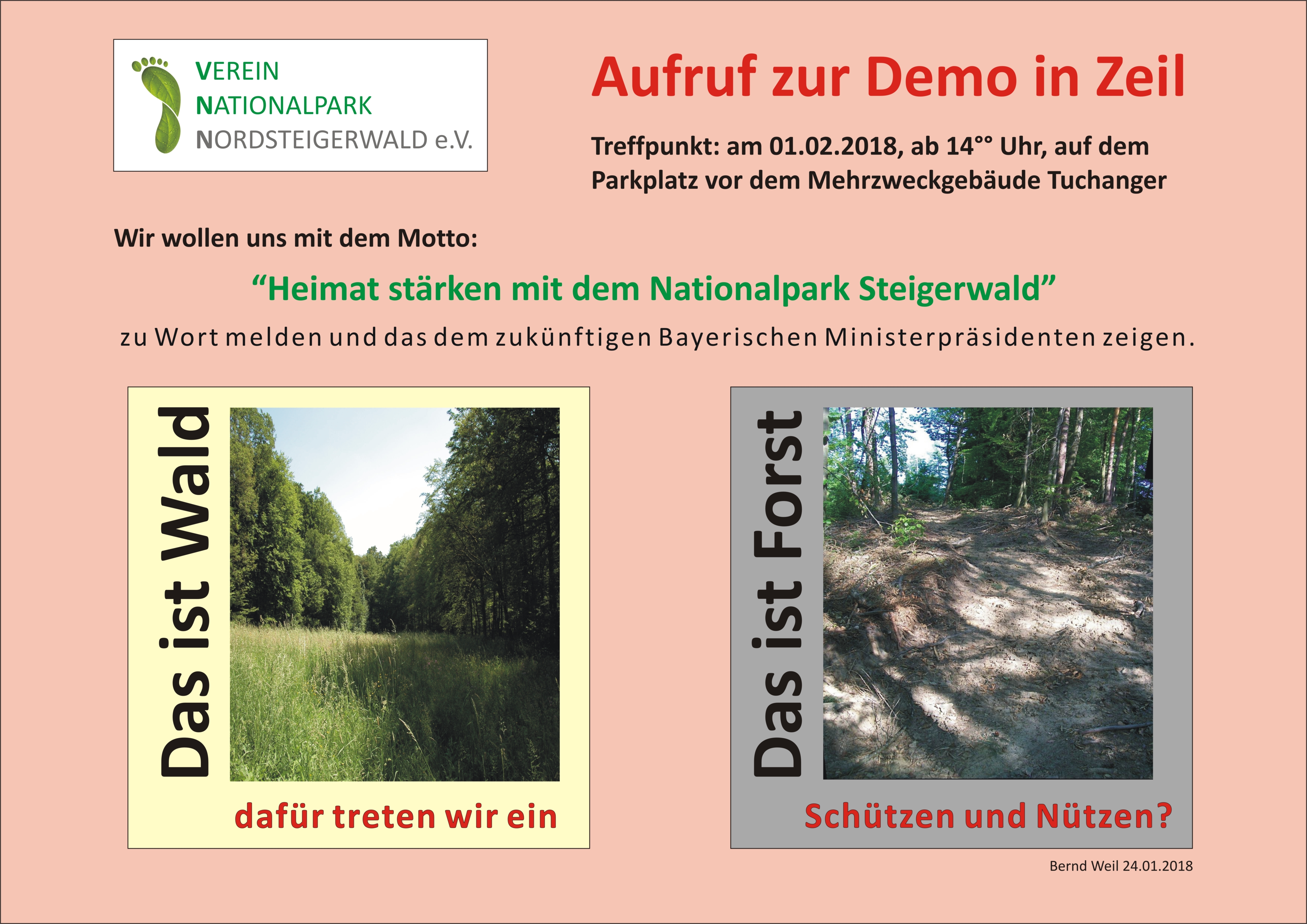 der Verein Nationalpark Nordsteigerwald lädt Sie dazu ein, an seiner nächsten Demonstration am 2. Juli in Kitzingen teilzunehmen. Wir treffen Ministerpräsident Seehofer und wollen möglichst viele Nationalparkbefürworter sein, um ein starkes Zeichen zu setzen. Ja zum Nationalpark Steigerwald, Ja zum Schutz der naturnahen Ebracher Buchenwälder, die Frankens 1. Weltnaturerbe werden können und Ja zu einer naturbewussten Regionalförderung!