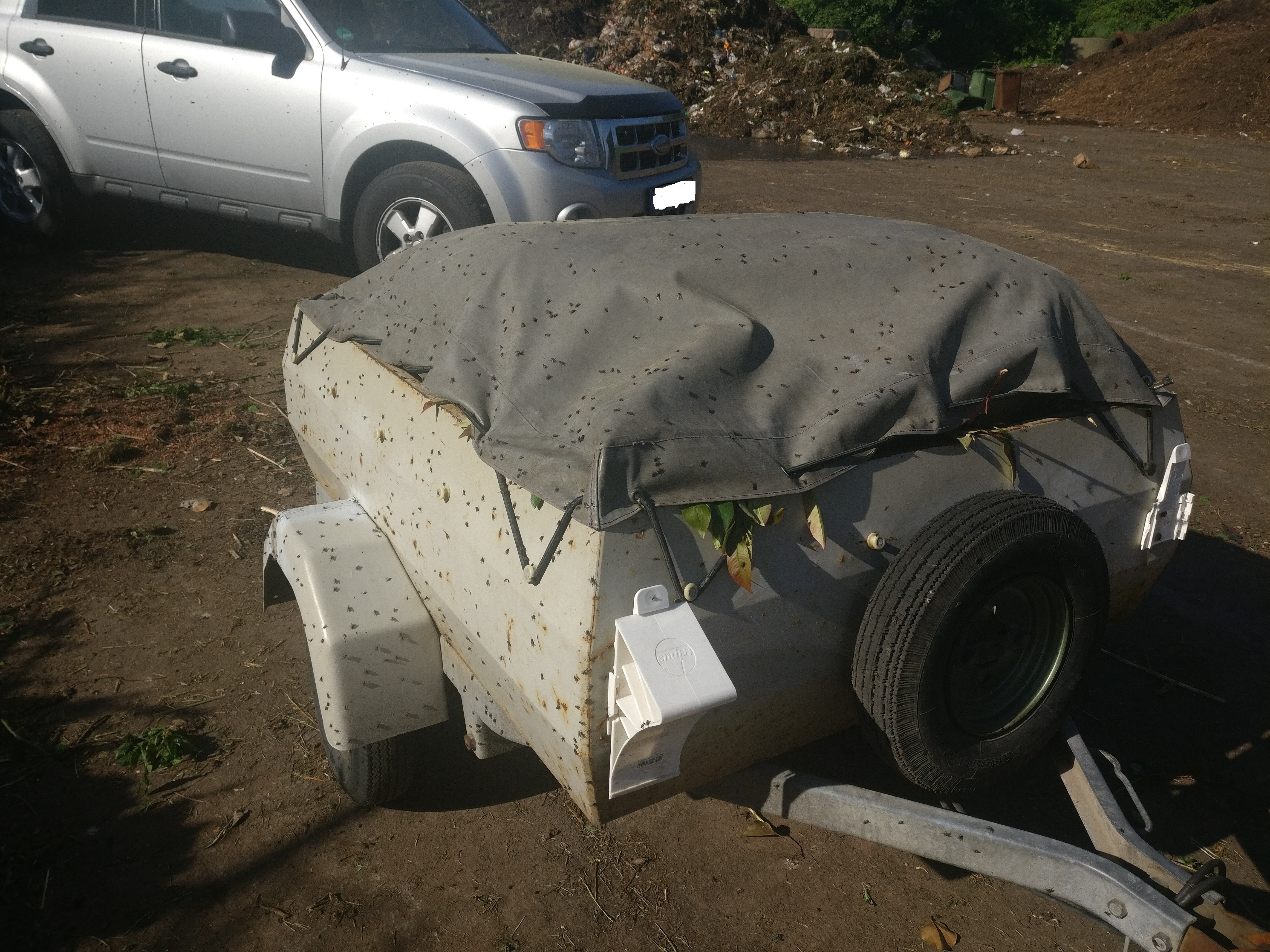 Anbei Bild vom Anhänger. Hoffe man kann es erkennen. Angehalten, ausgestiegen, Bild gemacht. Hunderte von Fliegen.