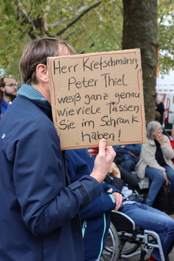 Die nächste Demo ist für den 02.11. in Stuttgart angemeldet. Letztes Mal waren wir 300 Menschen und hatten ca. 3.000 Unterschriften. Dieses Mal haben wir über 10.000 Unterschriften. Kommt zahlreich. Infos hier: kein-palantir-bw.org/kundgebung/