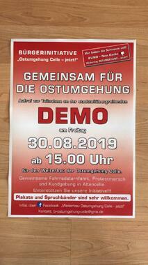 Für den 30.08.2019 hat die BI eine DEMO geplant, deren InfoPlakat ihr im Anhang findet.