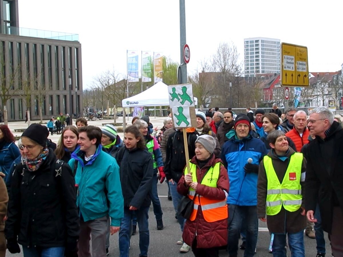 Insgesamt drei Mal hat die Polizei für uns die Bundesstraße vom Autoverkehr freigehalten, für jeweils 10 Minuten. Und viele Menschen (ob zufällig vorbeikommend oder demonstrierend) konnten selbst erleben, wie kurz, schnell und dennoch sicher der Weg vom Nordsternhaus zur Stadthalle / ZOB wird.