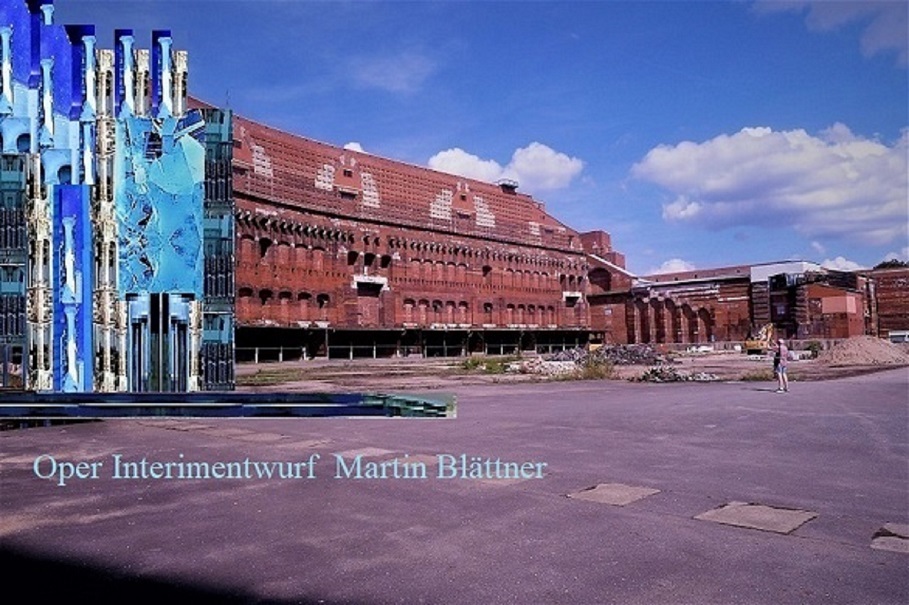 Seit 5.Juni war Abgabeschluss der Entwürfe für ein Opern-Interim, das sich laut Ausschreibung der Kongresshalle unterordnen soll. Ob und wie viele namhafte Architekten ihren Hut in den Ring geworfen haben, wissen wir nicht. Vielleicht wird das erst im nächsten Jahr zum 70.Geburtstag der Kulturreferentin und Kulturbürgermeisterin Julia Lehner bekanntgeben. Hier meine Vision der nächsten Jahre als Opern-Skizze verfasst: