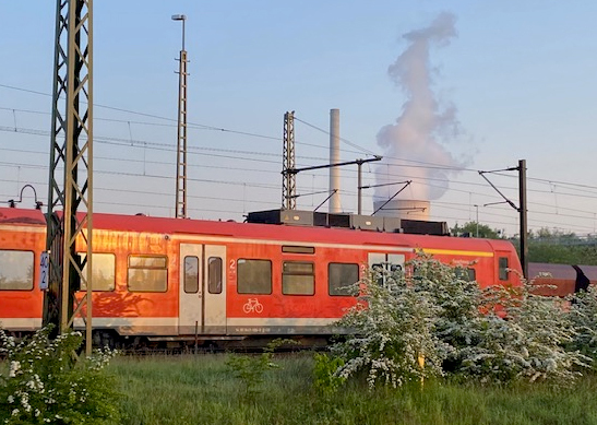 Foto: Zug der Baureihe 425 vor der Kulisse des Kraftwerks Lahde. Diese Züge wurden auf der Strecke bis 2017 eingesetzt. (Foto: © Volker Burmann)