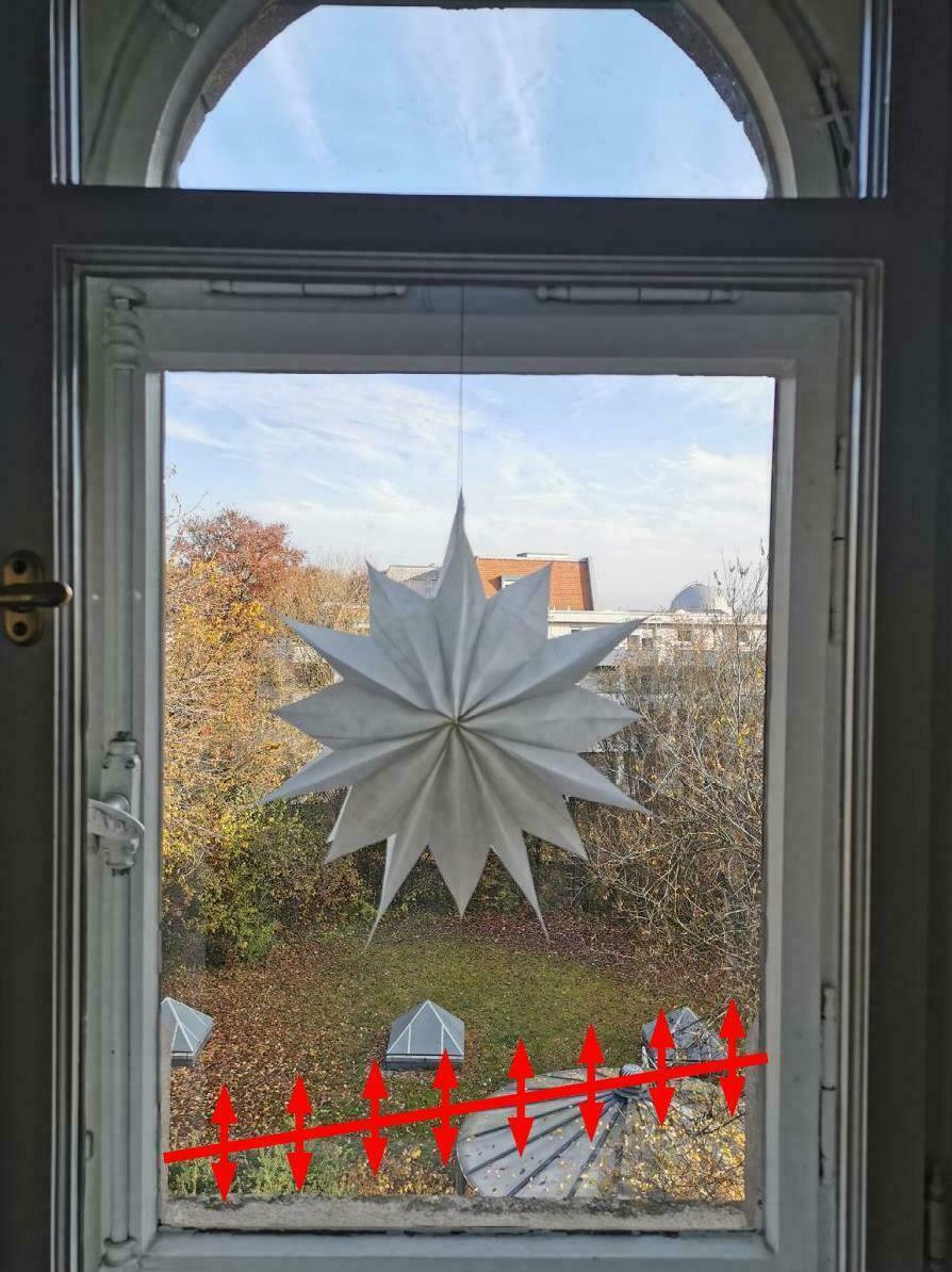 Als Ergänzung zum Petitionstext hier noch ein Blick in den Garten. Dies ist ein aktuelles Foto von der Facebook Seite des Hauses der Familie. Wie man an dem Stern sieht, herrscht im Haus der Familie schon Weihnachtsstimmung. Die ist allerdings getrübt, denn was man auf Facebook leider nicht sieht ist die rot eingezeichnete Baulinie. Nach den aktuellen Planungen reicht der Neubau bis an den kleinen runden Gartenpavillon heran, schneidet von diesem sogar ein Stück ab und läuft dann schräg am Haus vorbei.