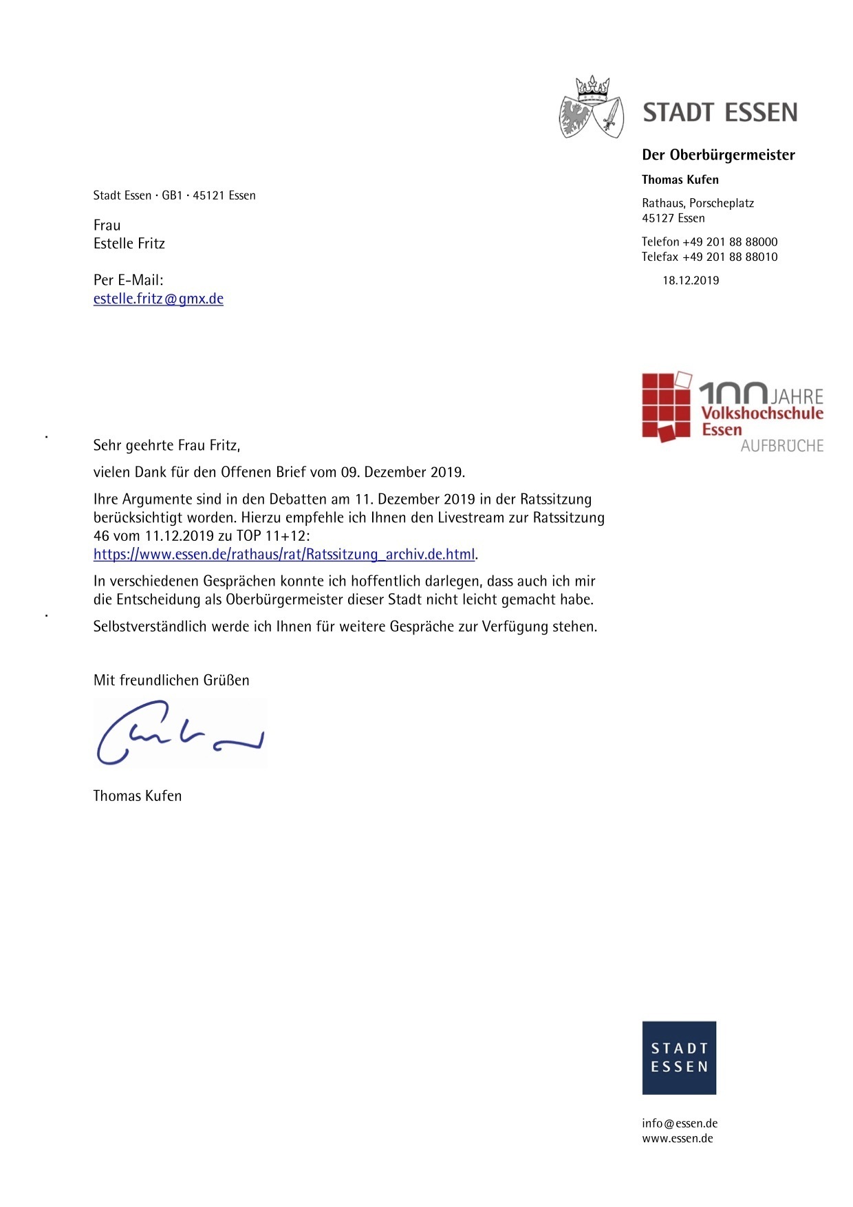 Teil 2: Offener Brief an Oberbürgermeister Thomas Kufen vom 09.12.2019