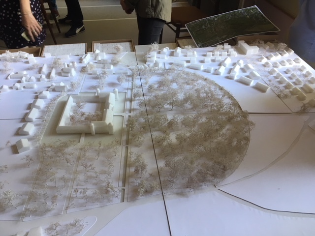 „ ein Dorf neu denken !“ zB. eine neue Siedlung von einmaliger Bauhaus-Qualität ! Dann ging es hauptsächlich um die Frage, ob und wie gebaut werden könne. Während die Vertreter betreffend Landschafts- und Umweltschutz und des Denkmalschutz ihre Bedenken äußerten, die Ackerfläche zu bebauen (Vorland gehört zum Schloss!), waren die Planer eher geneigt, Bauen zuzulassen.