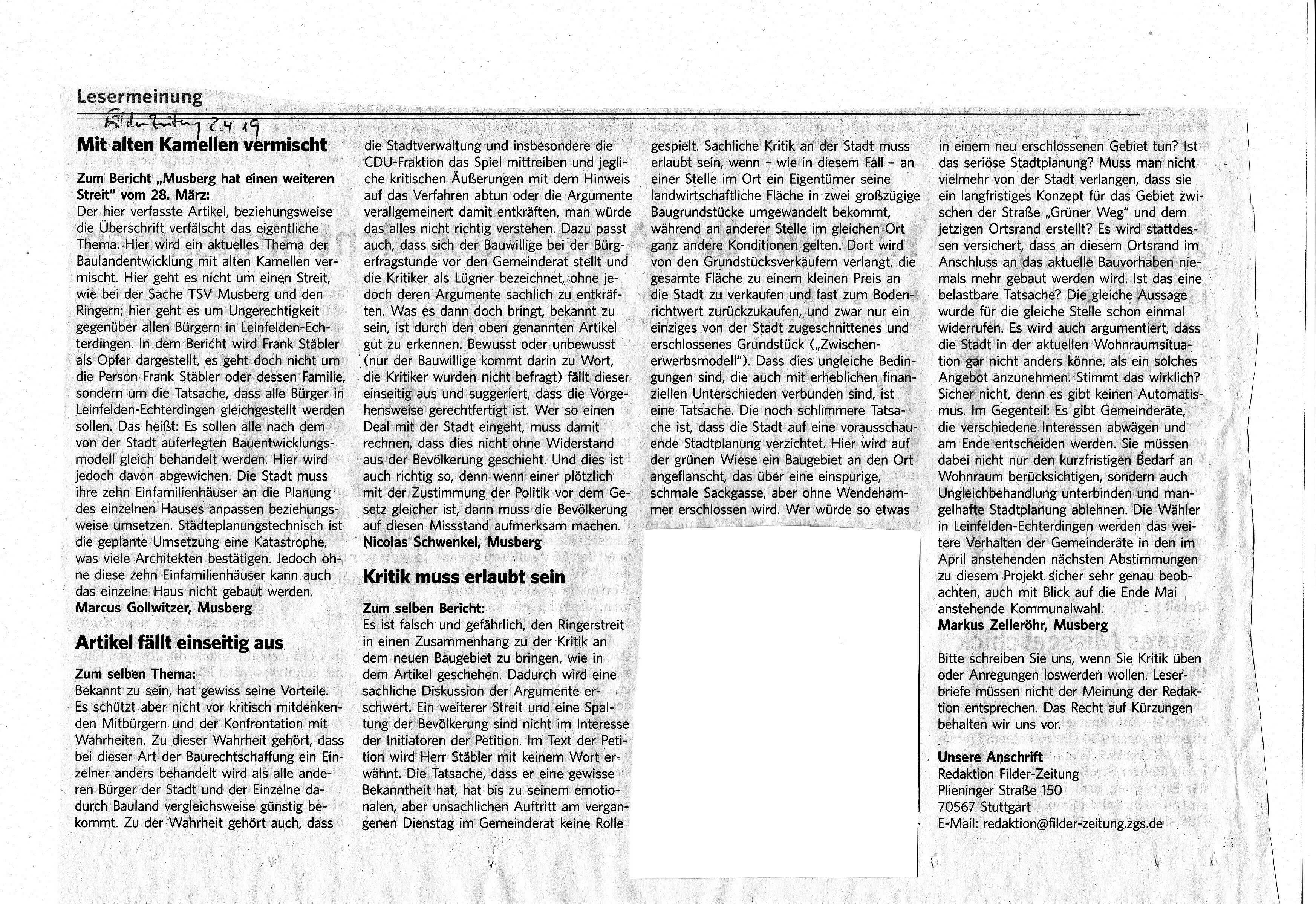 Anbei einige Leserbriefe, die in der vergangenen Woche in der Filderzeitung veröffentlicht worden sind. Der vorausgegangenen Artikel zu unserer Unterschriften-Übergabe war leider sehr einseitig aus Sicht des Eigentümers geschrieben, der sich selbst in einer Opfer-Rolle sieht.