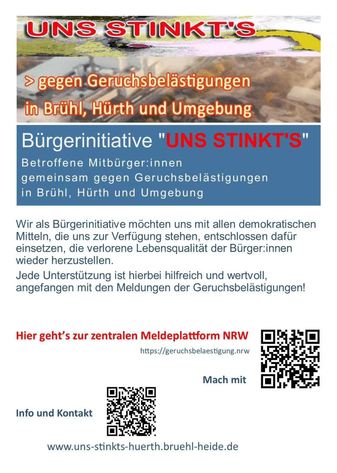 Da die Geruchsbelästigungen ja weiterhin vorhanden sind, haben die betroffenen Hürther und die Brühler in der Zwischenzeit eine Bürgerinitiative gegründet, die seit dem 30.06.2022 sehr aktiv ist.