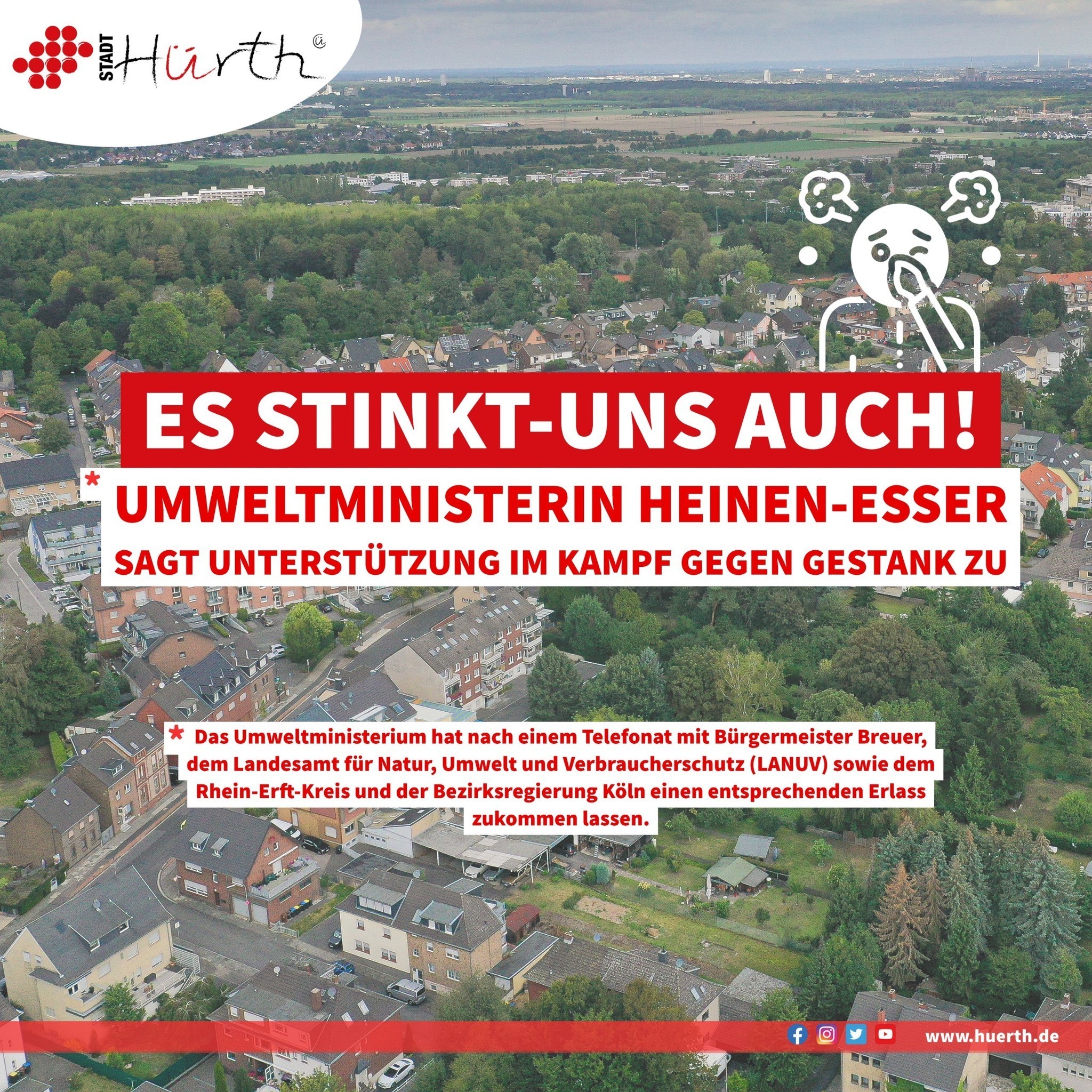 Da kam auf einmal jemand auf die Idee eine Petition zu starten, man informierte die Presse, das Radio und das TV. Und ganz plötzlich gab es ein Meldeportal, es kam Bewegung in die Sache und die Öffentlichkeit bekam mit, was sich hier in den Hürther Stadtteilen geruchstechnisch abspielte und noch immer abspielt.