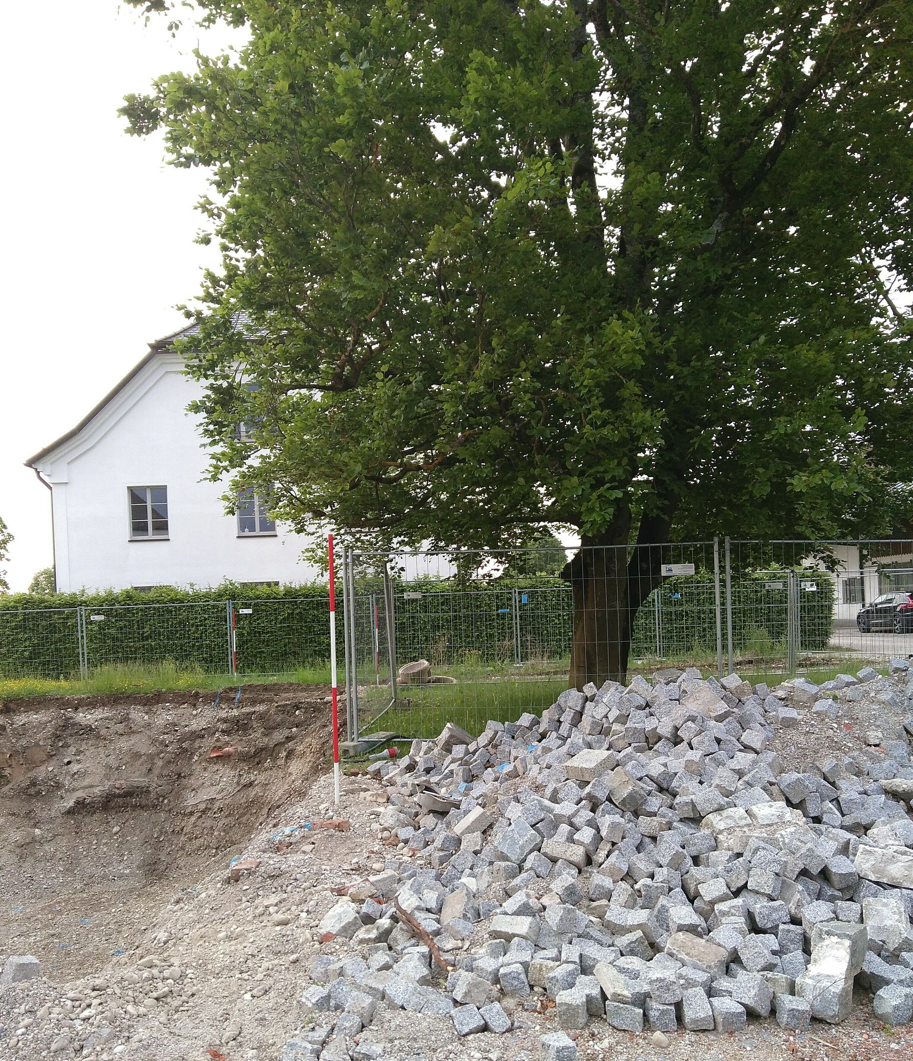 Eine ältere Buche, die im Süden, nahe des bereits abgerissenen Altgebäudes steht, ist momentan noch vorhanden. Die derzeitige Baugrube reicht etwas unter das Kronendach des Baumes. Wir hoffen sehr, dass man großen Wert darauflegt, den Baum zu schützen und zu erhalten.